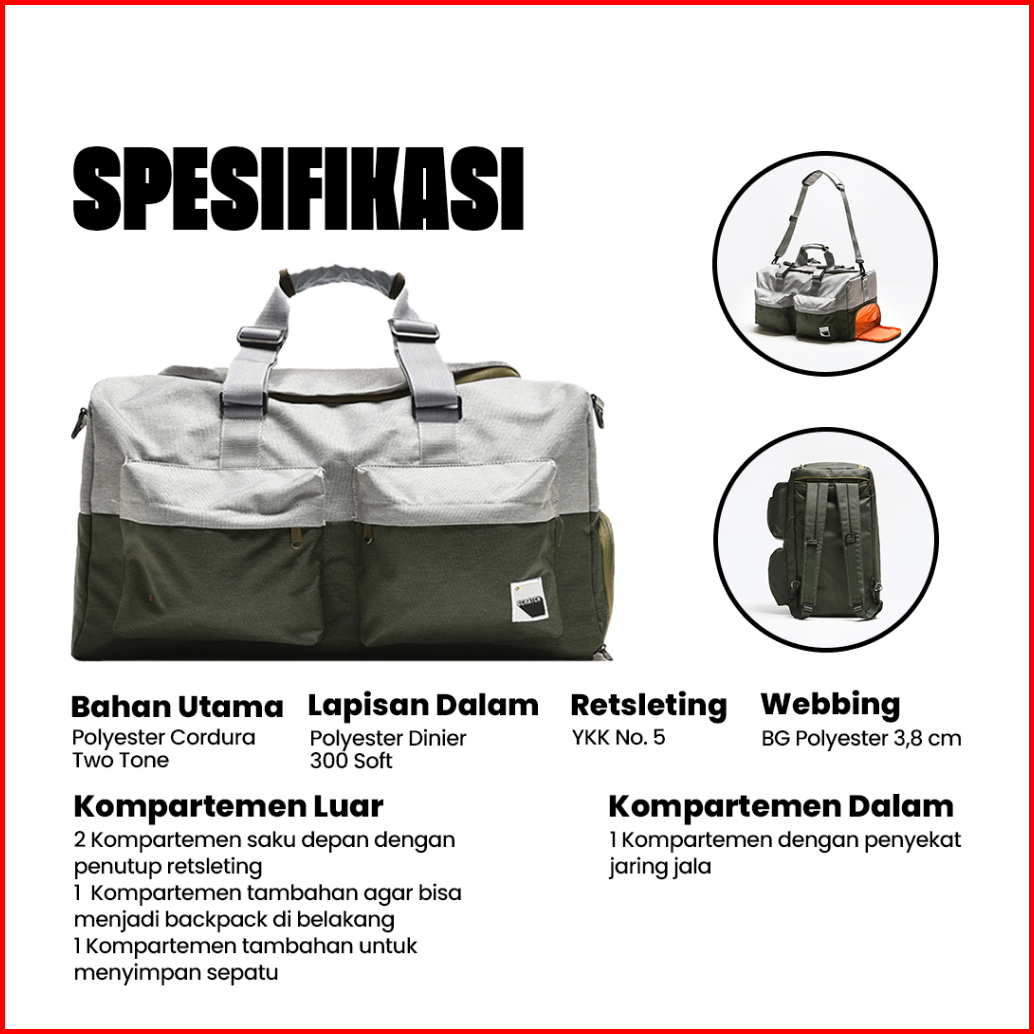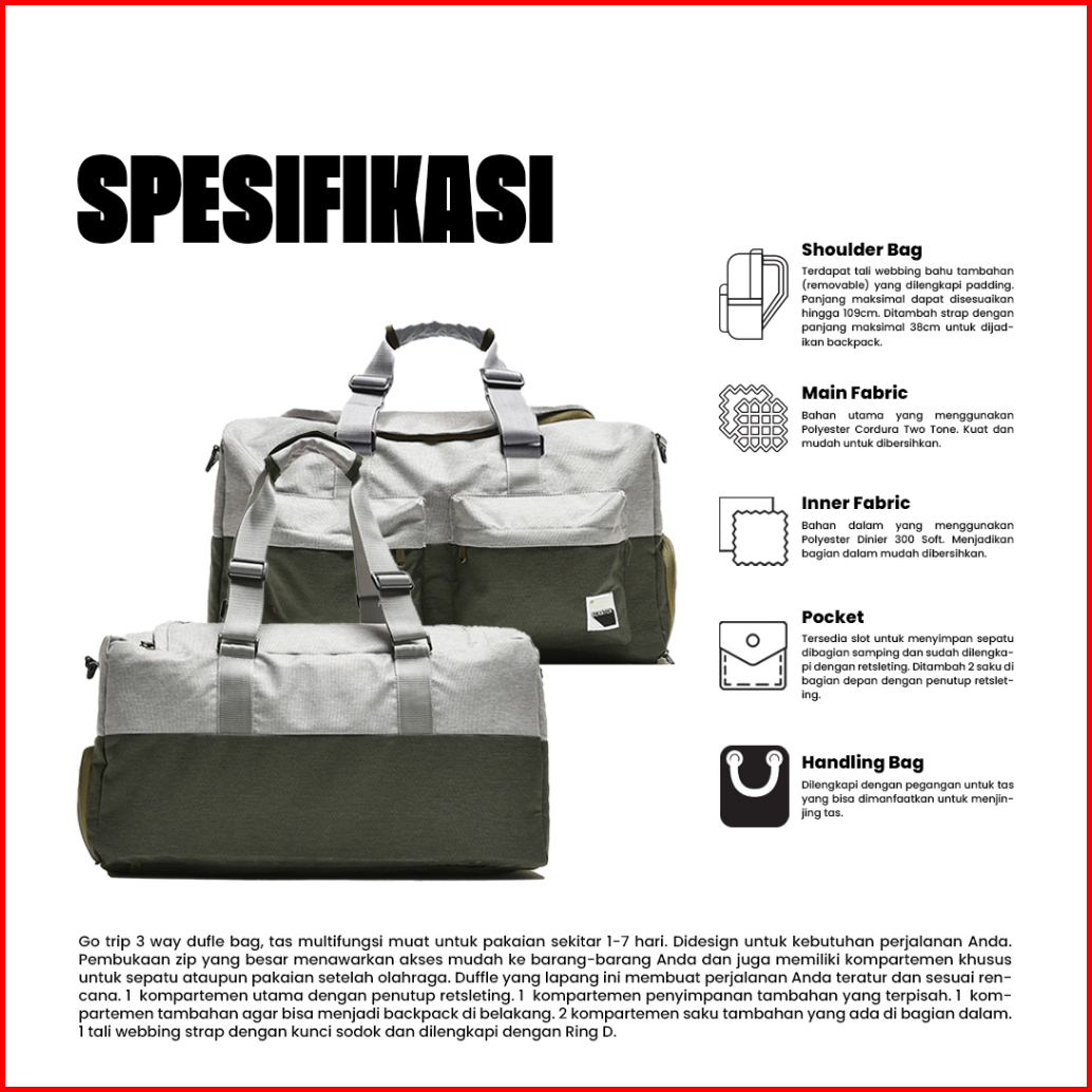 Scratchline Go Trip 3 Way Travel Bag Misty Olive