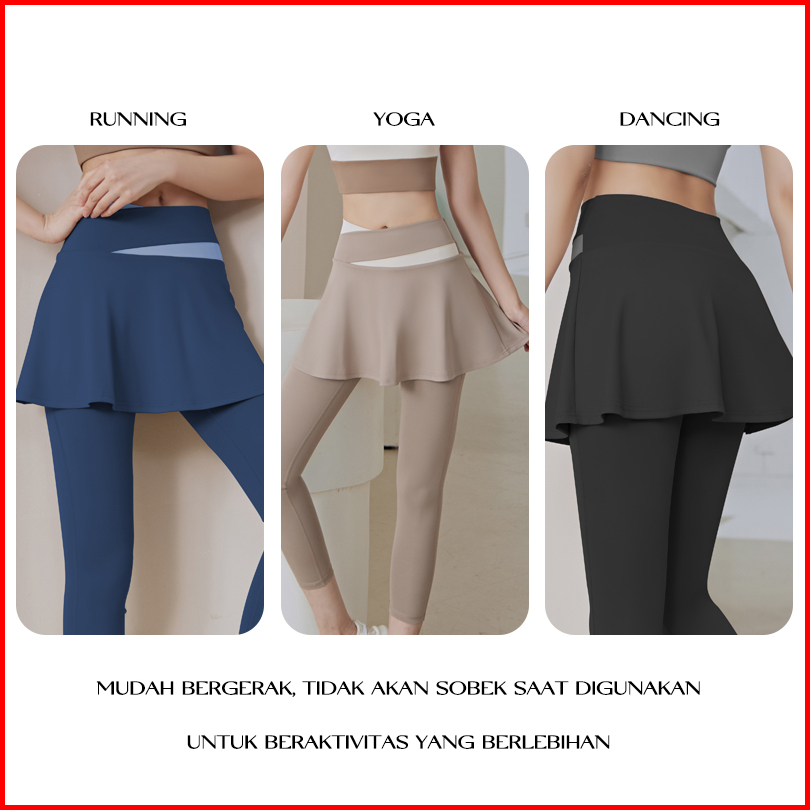 Diqian Yoga- Celana Leging Legging Rok Yoga Olahraga Senam Training Import Sport Dewasa Wanita Jumbo Celana Rok Olahraga