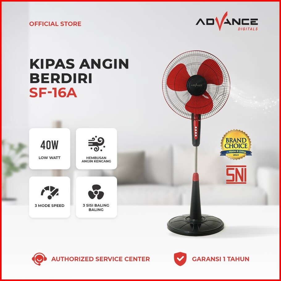 Kipas Angin Advance Sf 16a Stand Fan 16 Inch Berdiri Hitam Merah Murah Garansi Sni Low Watt Kaki Bulat