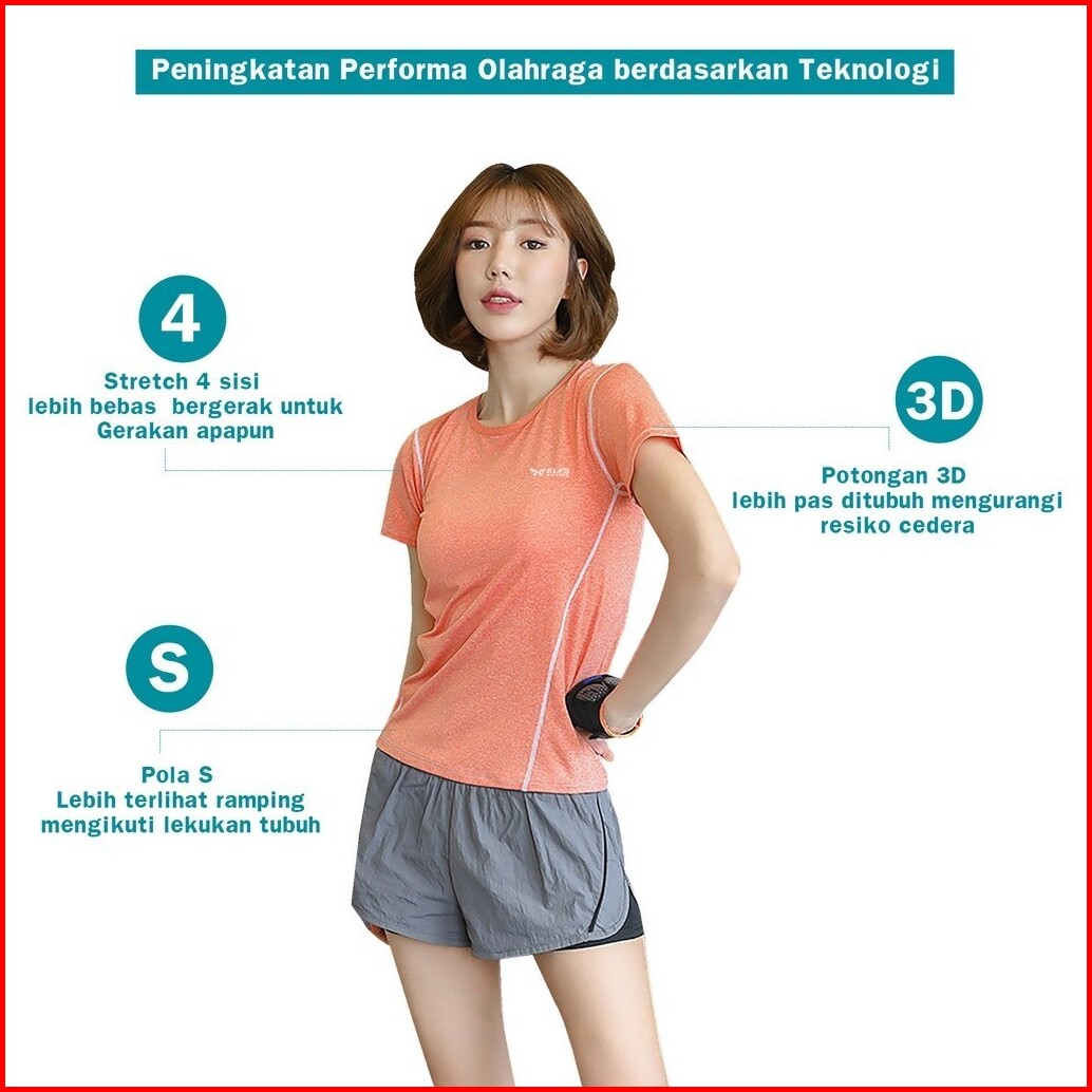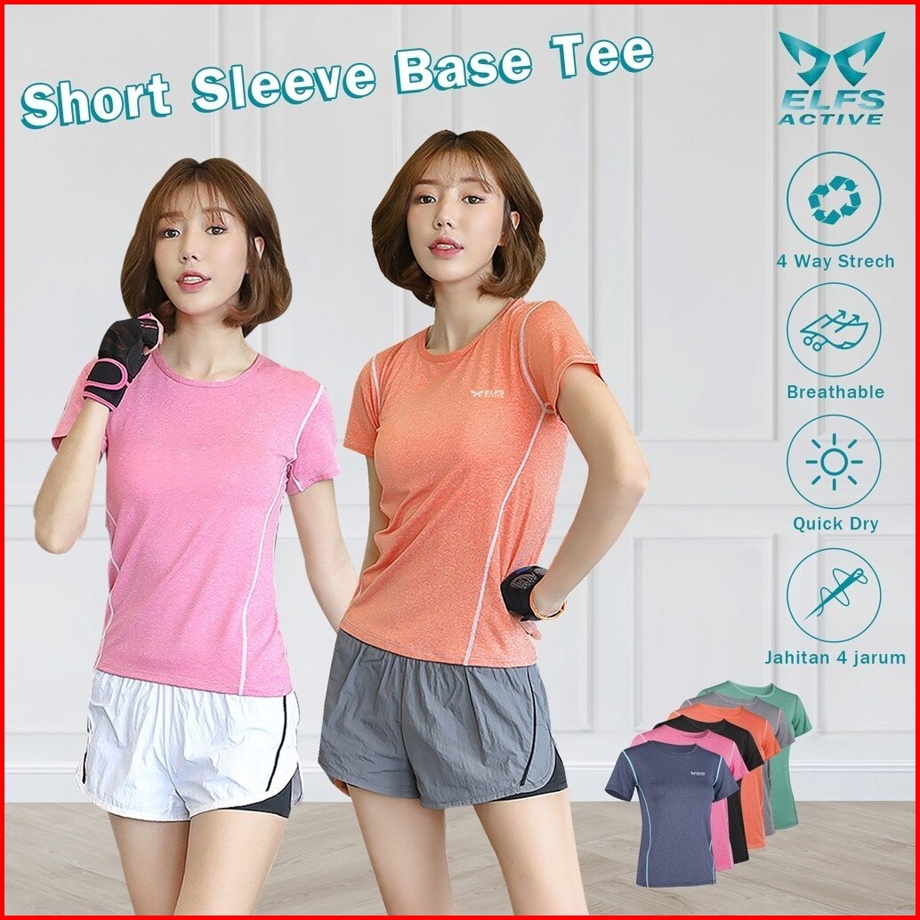 Elfs Active Womens Short Sleeve Base Tee Sports Wear Kaos Tshirt Olahraga Wanita