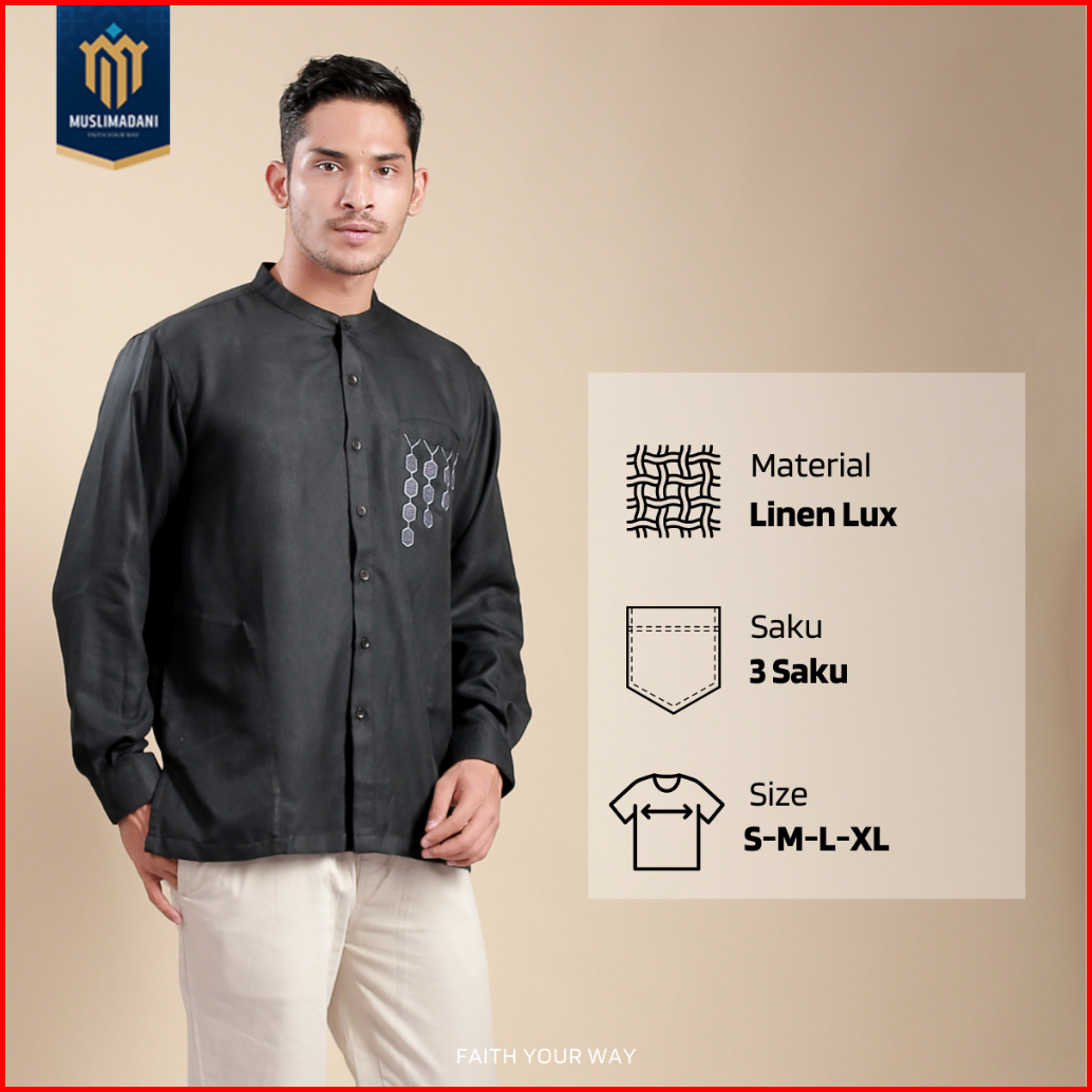 Muslimadani Baju Koko Elqaf Long Kemko Dewasa Lengan Panjang Kemeja Pakaian Muslim Pria