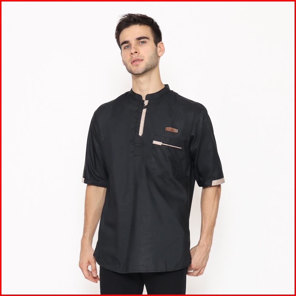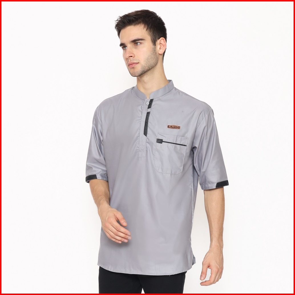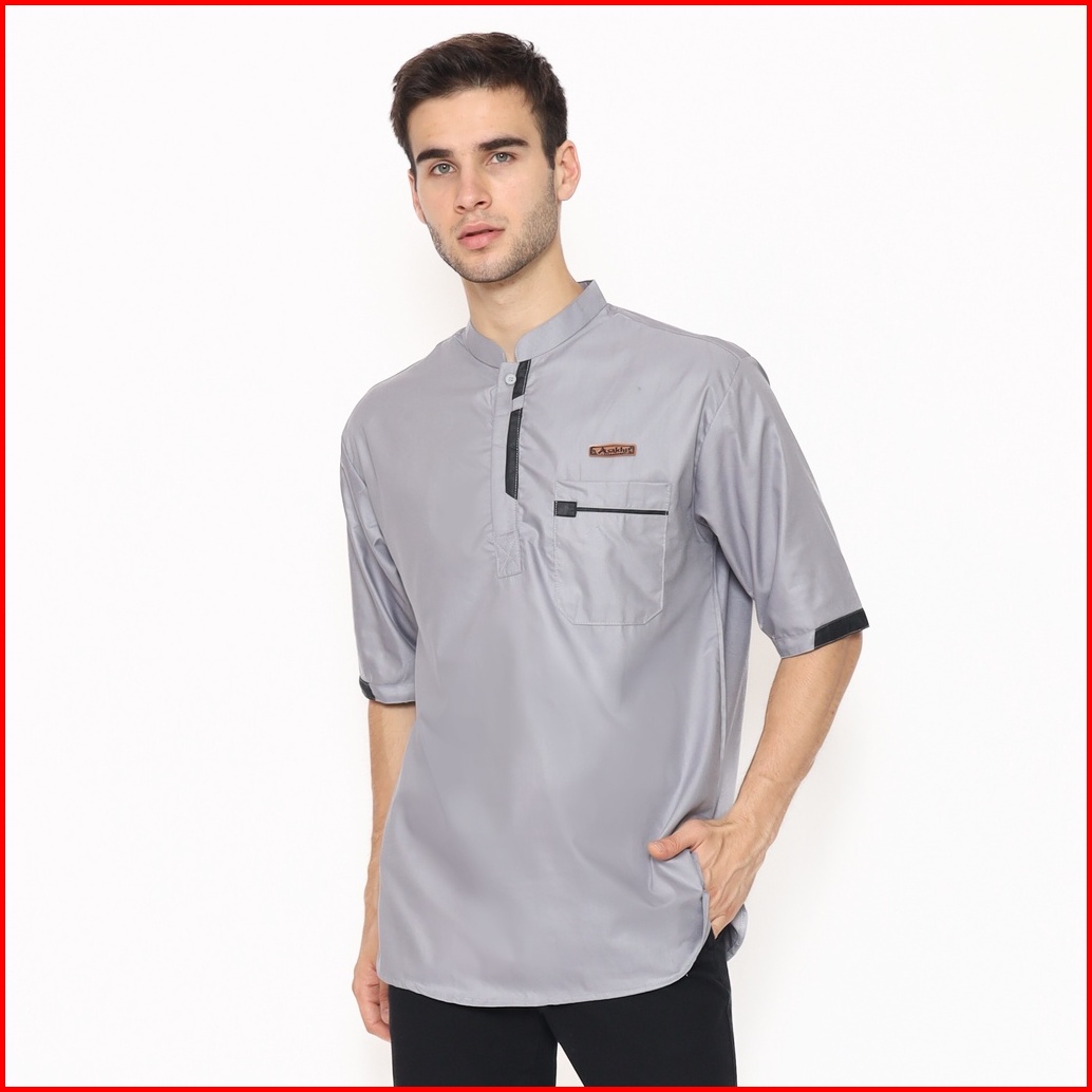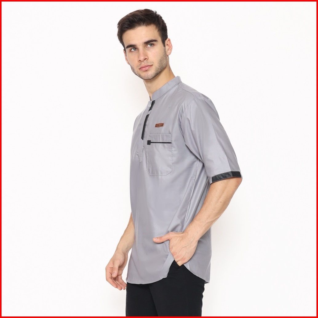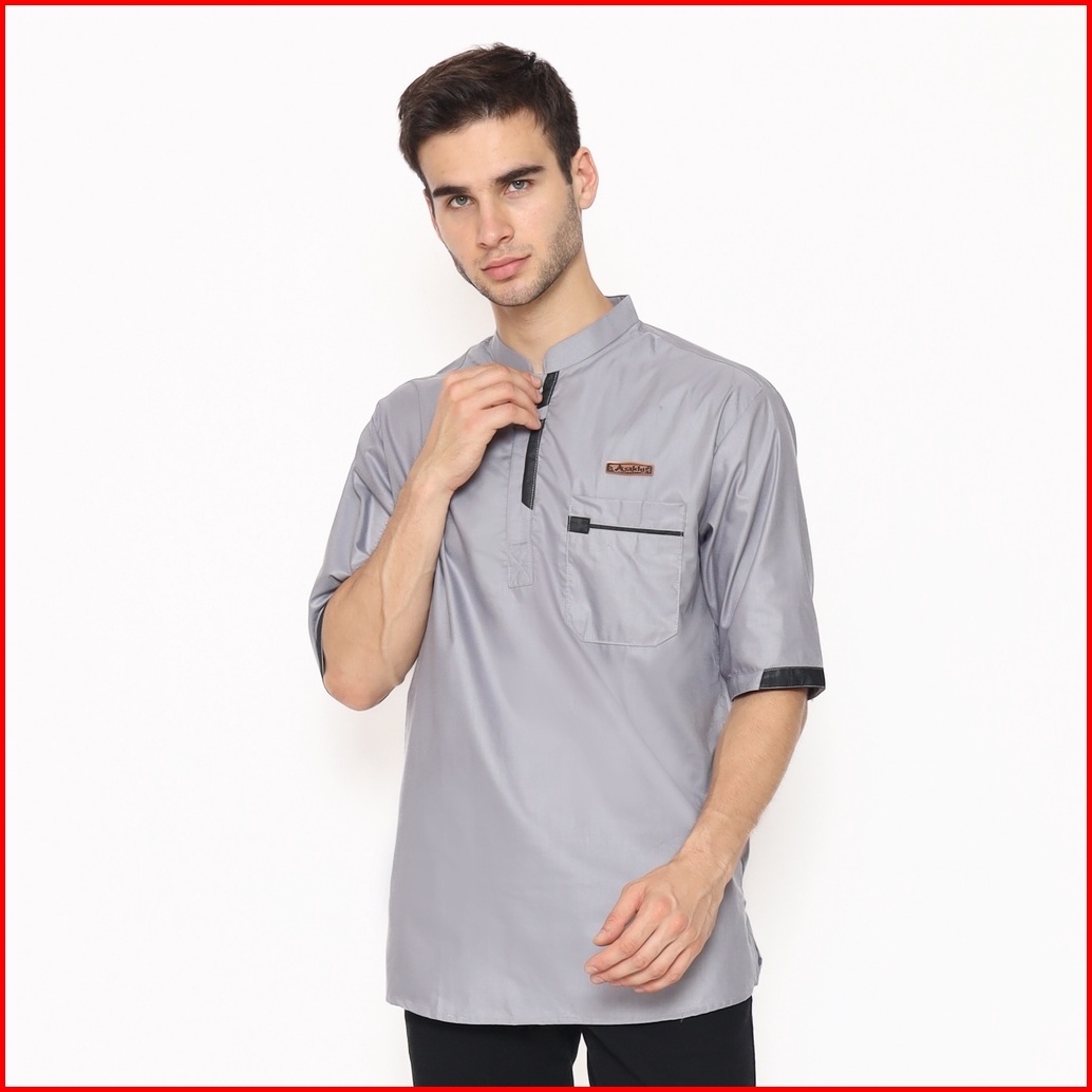Asakhi - Baju Koko Kurta Pria Lengan Pendek Motir Arzad Warna Abu M L Xl