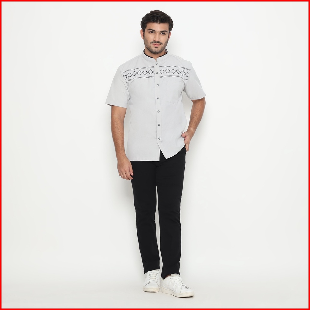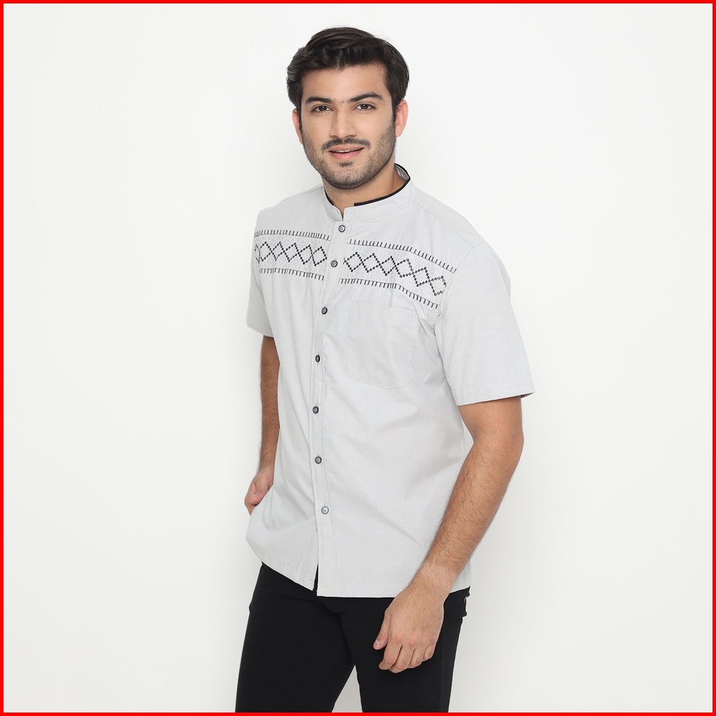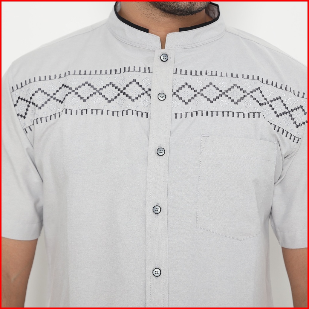 Code Male Kemeja Koko Pria Bordir Premium Abu Lite Khalid