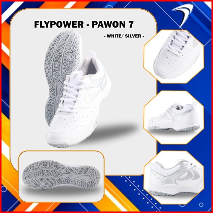 Sepatu Badminton Shoes Flypower Pawon 7 Original-white Silver
