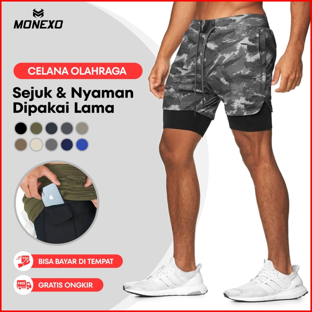 Monexo - Celana Pendek Sport Kompresi Pria Celana Pendek 2in1 Olahraga Gym Boxing Bersepeda Jogging