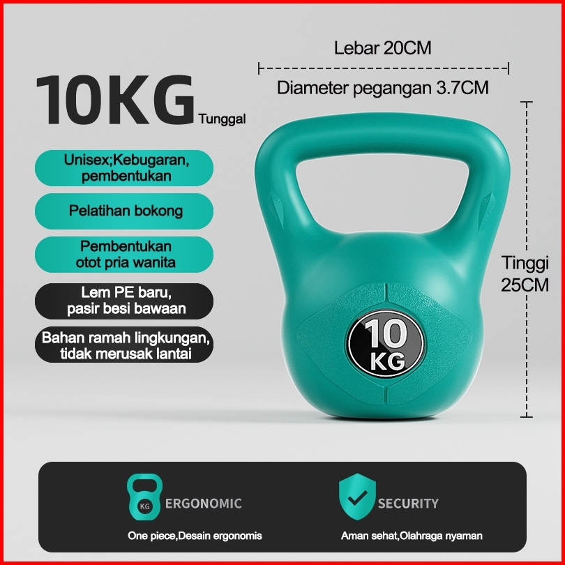 Keep Going Max- Kettlebell 10kg Olahraga Kebugaran Tahan Aus Dan Anti-bentur Peralatan Kebugaran Rumah Barbell 10kg