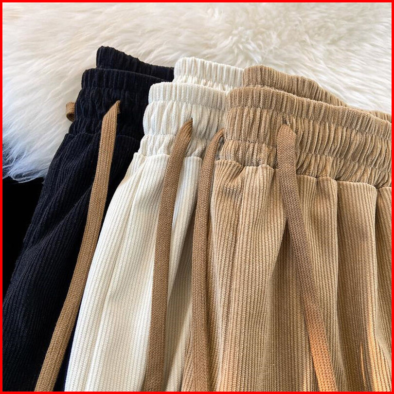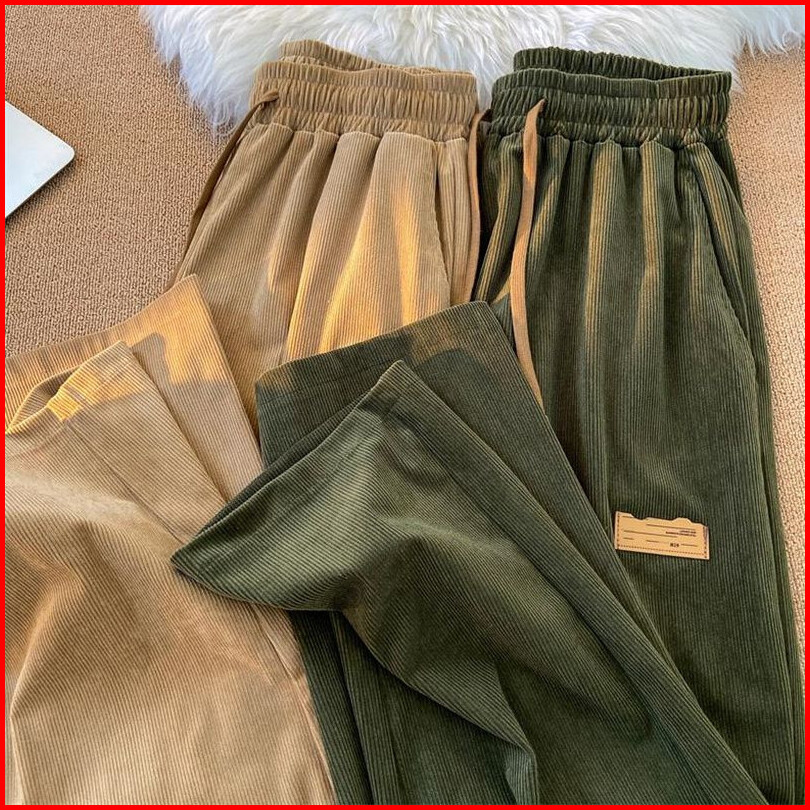 Yuruma Celana Panjang Olahraga Celana Kaki Lurus Pinggang Tinggi Korduroi Wanita