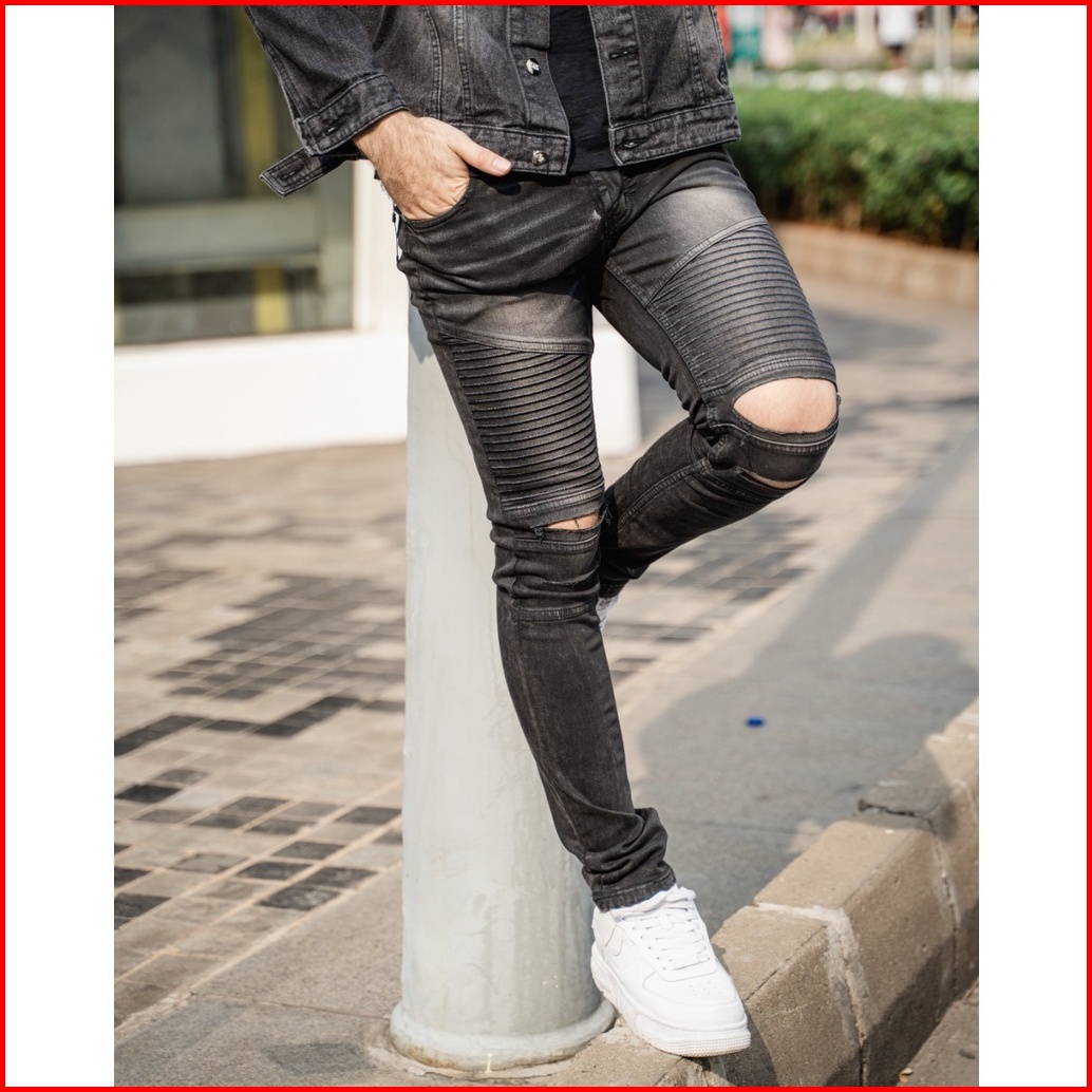 Weird Jeans - Biker Dush Black - Celana Jeans Denim Panjang Pria Slimfit Jeans