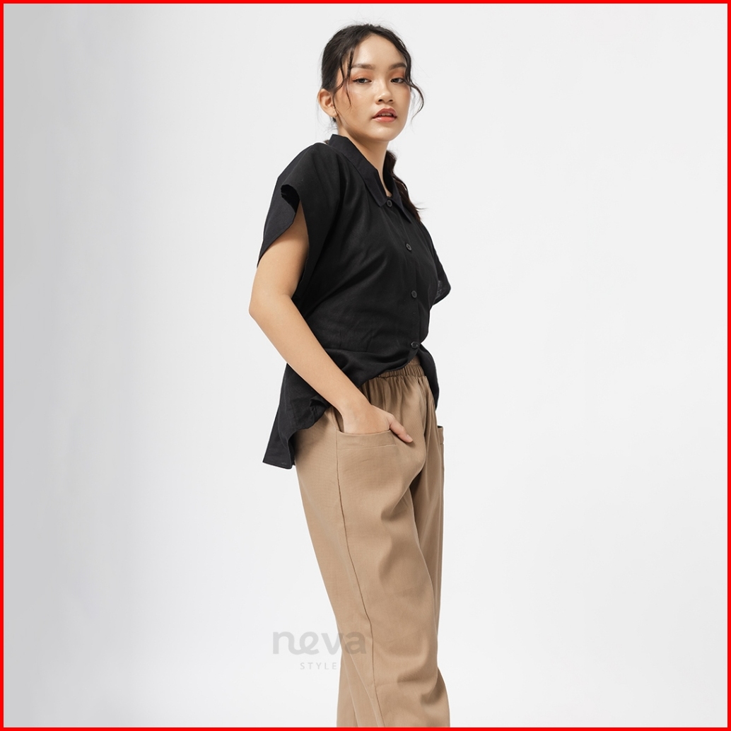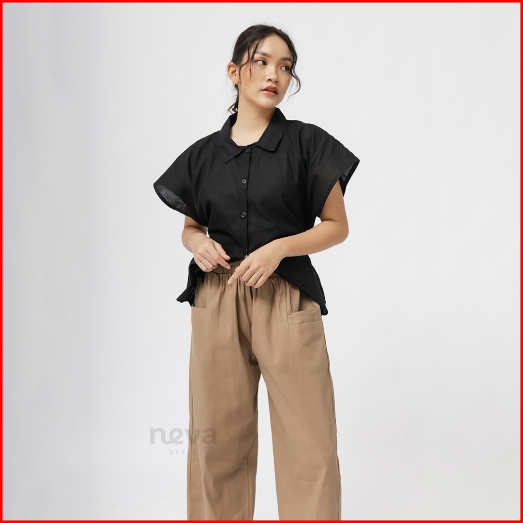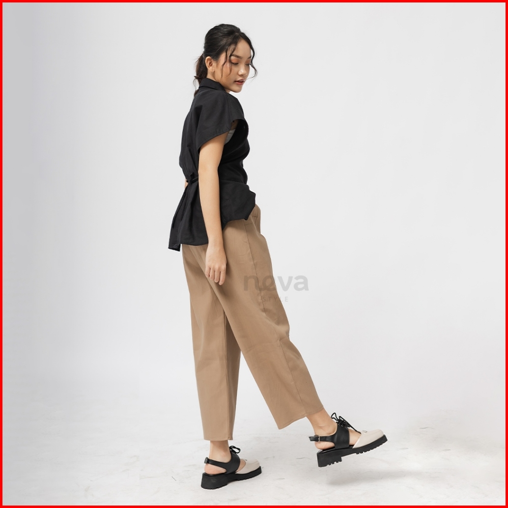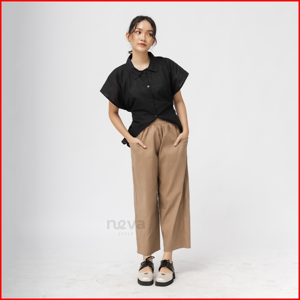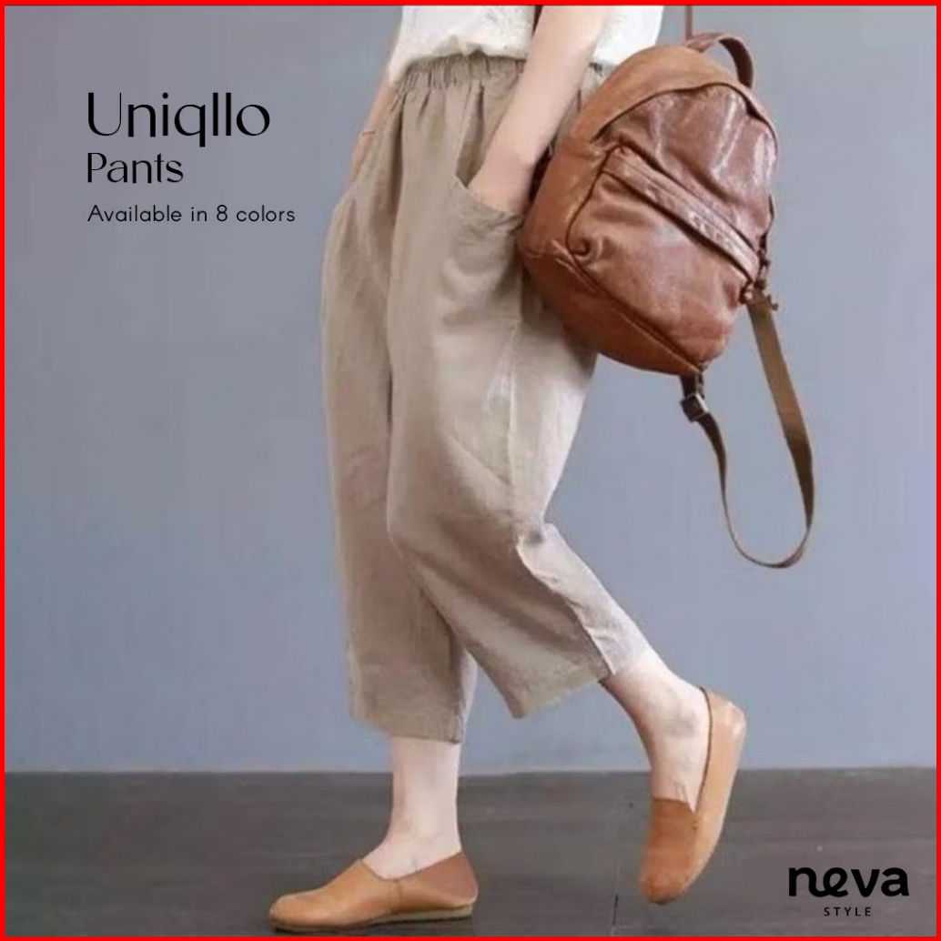 Neva Style - Uniqllo Baggy Pants Jumbo Bahan Katun Twill Celana Kulot Ankle Pants Pinggang Karet