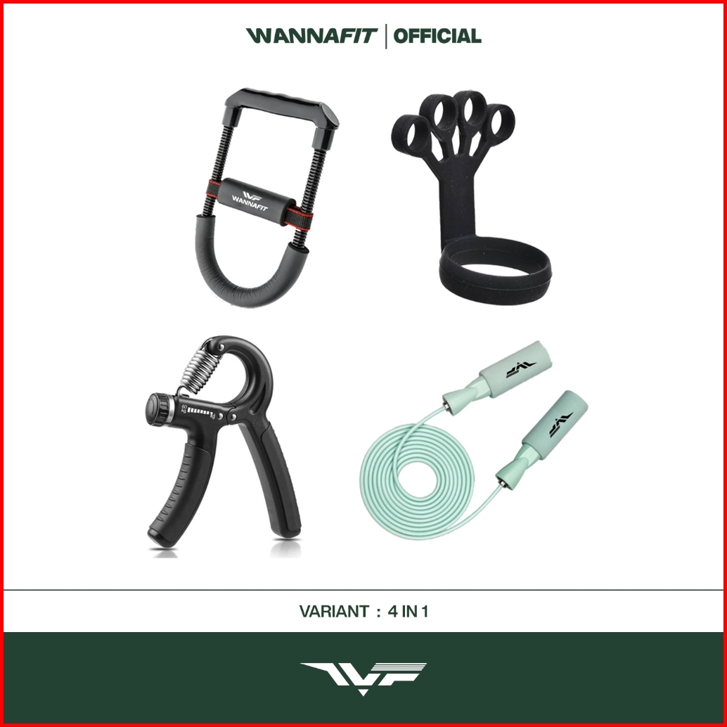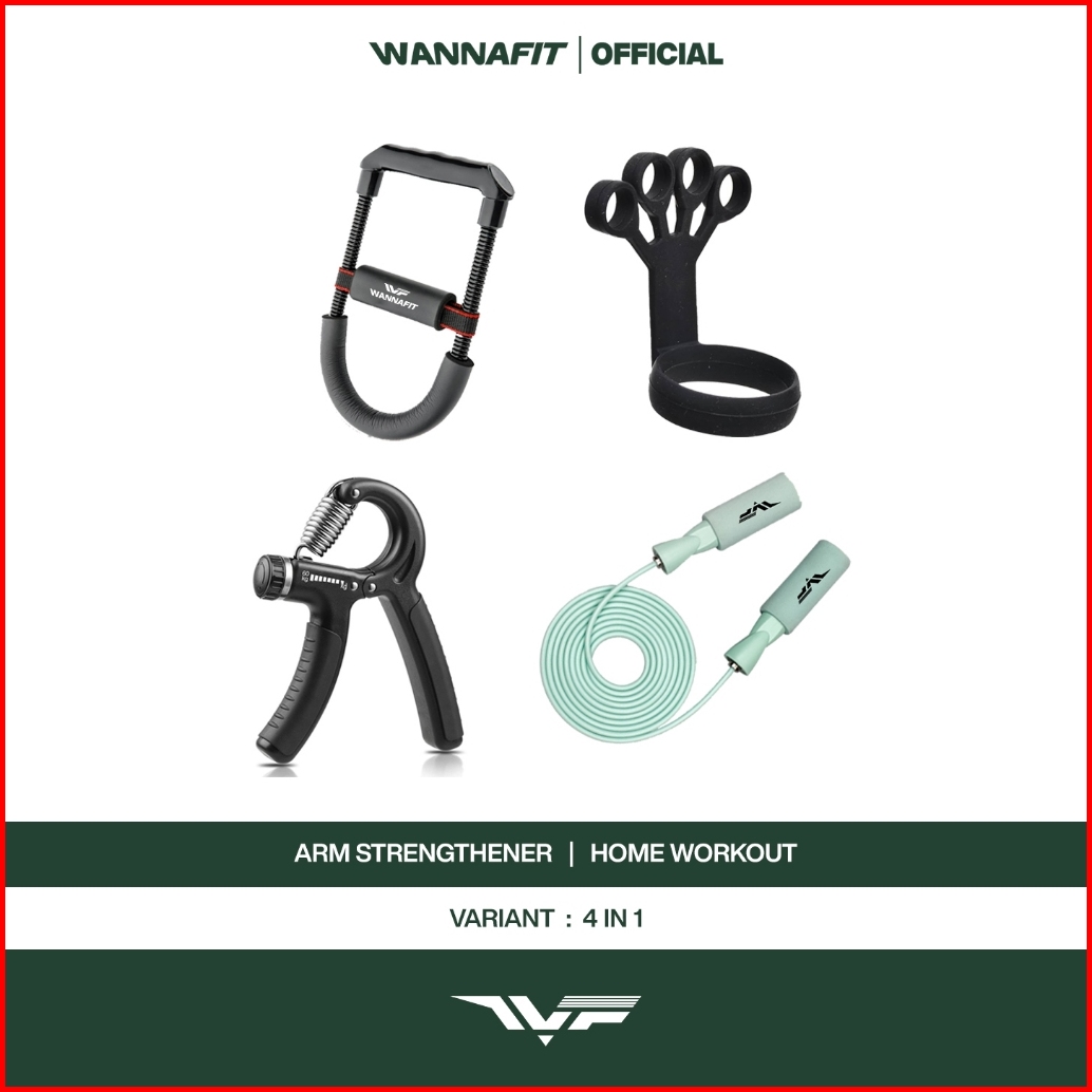 Wannafit Paket 4 In 1 Arm Trainer Power Wrist Skipping Finger Resistance Alat Olahraga Rumah