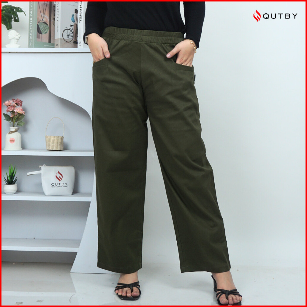 Qutby - Celana Kulot Wanita Korean Long Jumbo Bahan Katun Twill Premium