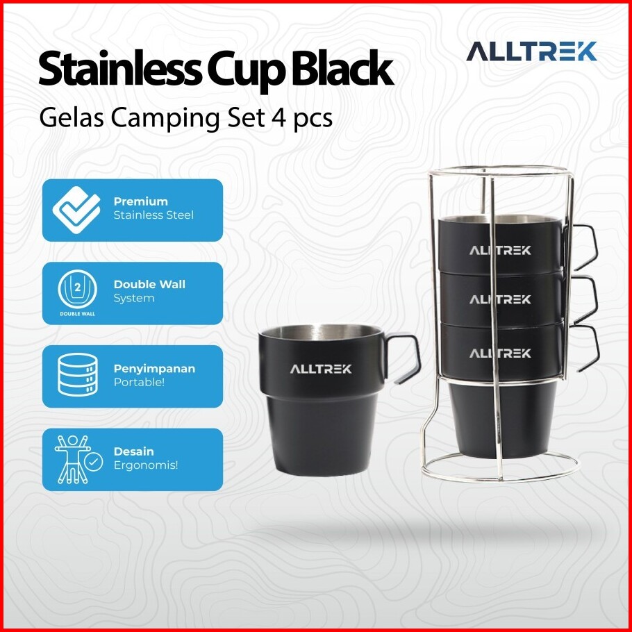 Alltrek Stainless Cup Camping Mug 300ml 4pcs Black Series