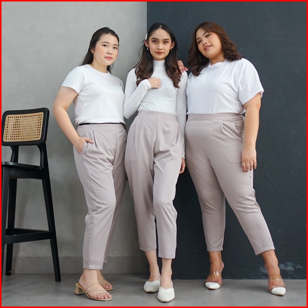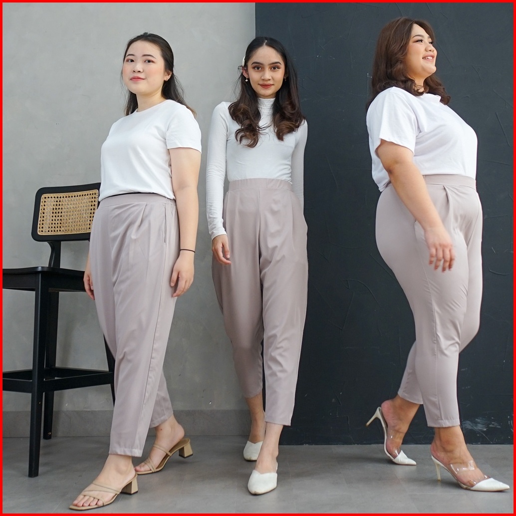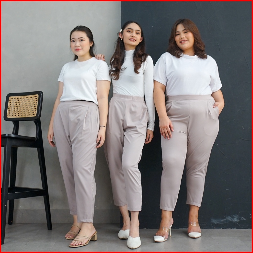 Ie.demode Miseon Celana Panjang Wanita Kerja Kantor Jumbo Ankle Pants Bahan Allya Earth Grey