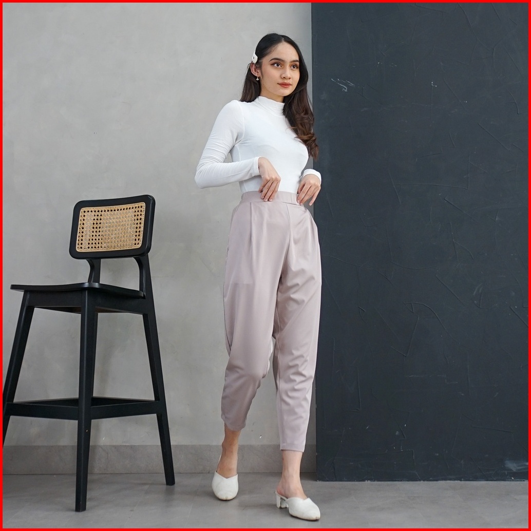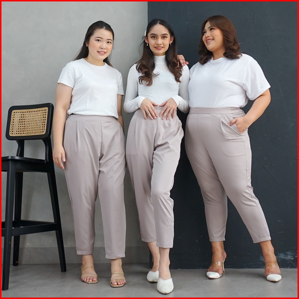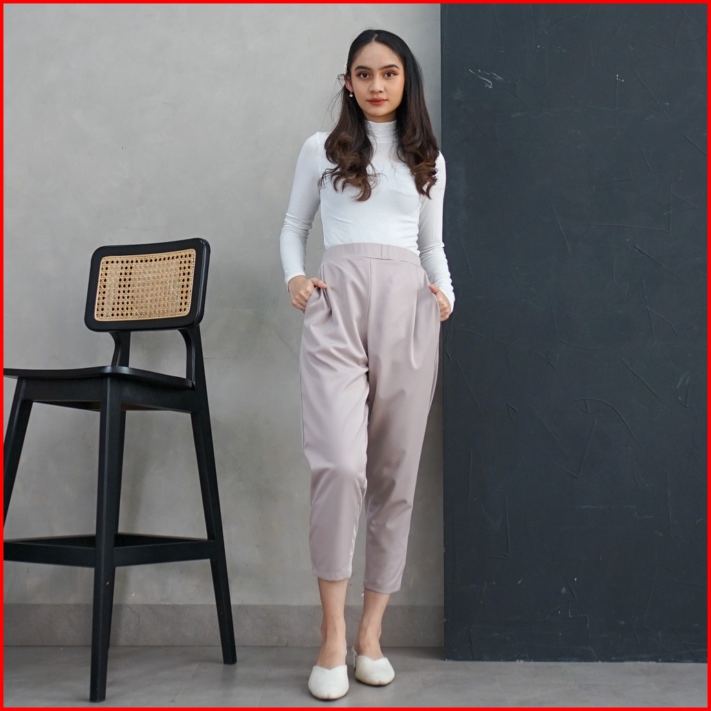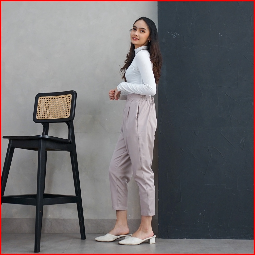 Ie.demode Miseon Celana Panjang Wanita Kerja Kantor Jumbo Ankle Pants Bahan Allya Earth Grey