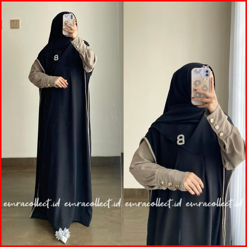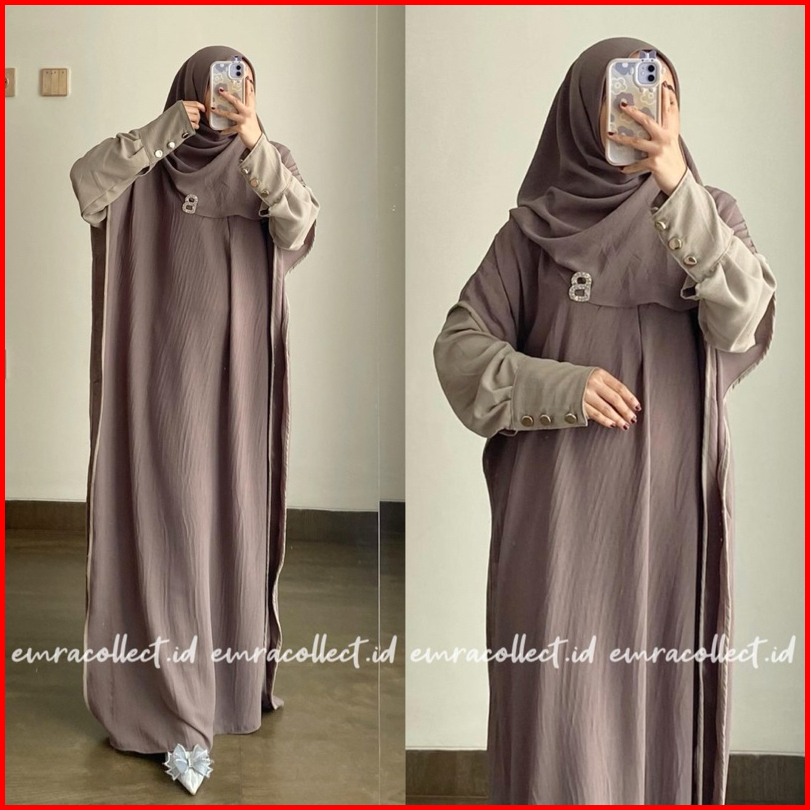 Abaya Kaftan Fatiya Free Hijab Pashmina Oval Setelan Abaya Jumbo Batwing Kaftan Laila Premium - Emracollect.id