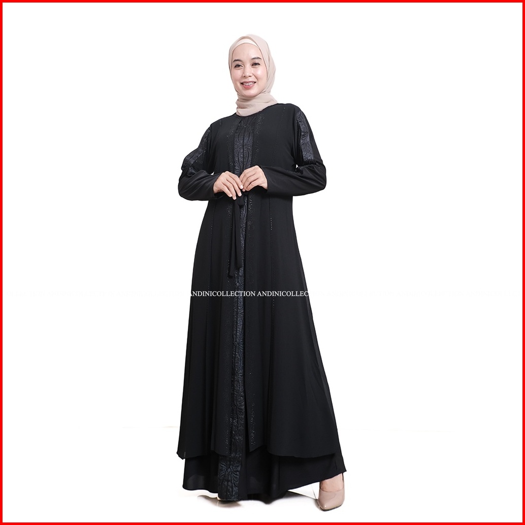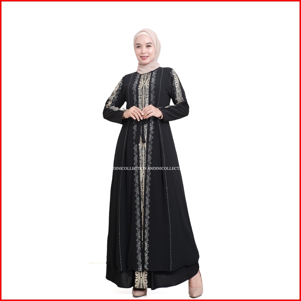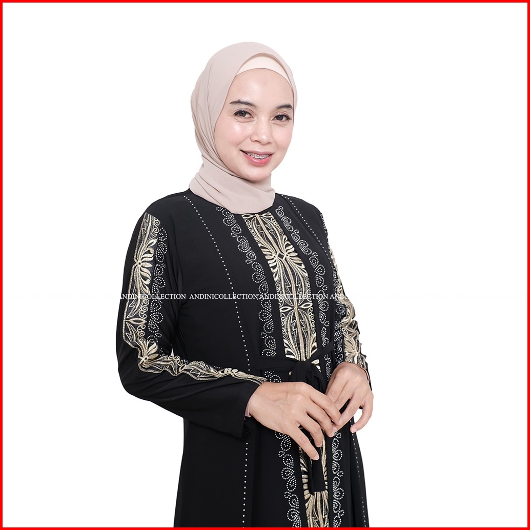 Andinicollection Abaya Turkey 467 Amarta Hitam Putih Dewasa Muslim Bordir Dan Payet Mewah