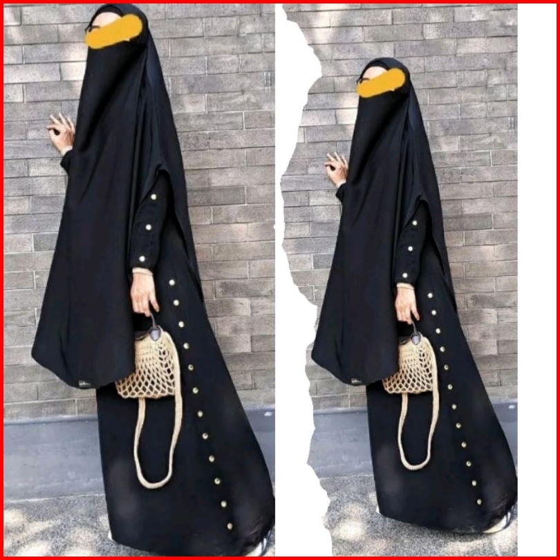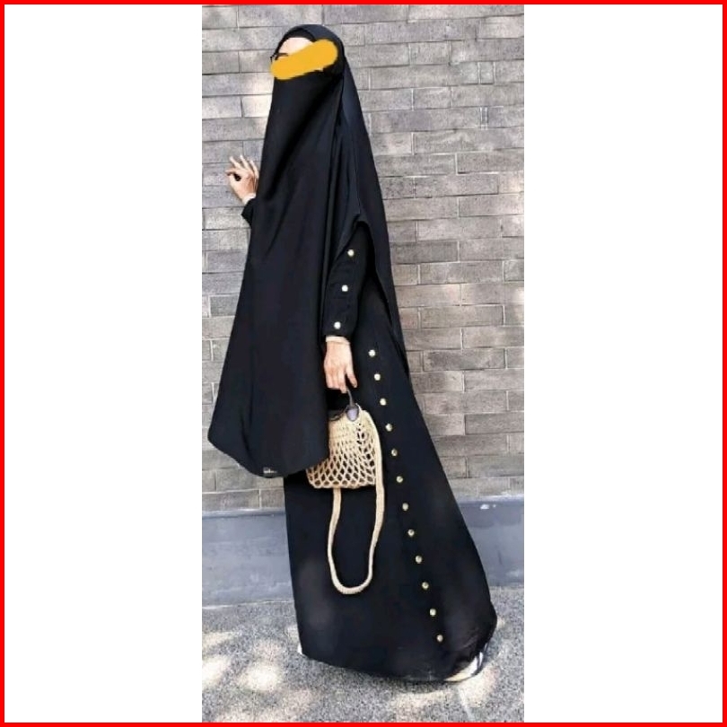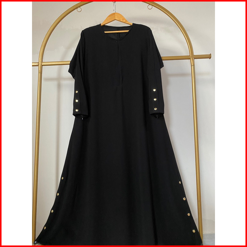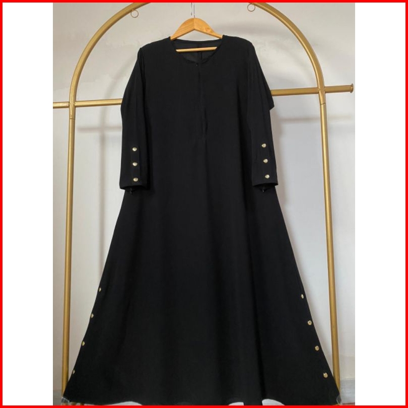 Abaya Fortaleza Jet Black Resleting Depan Xs-5l