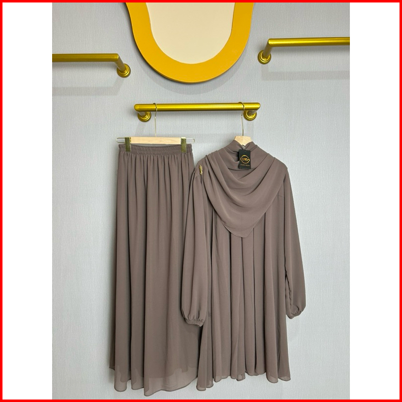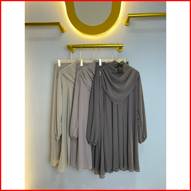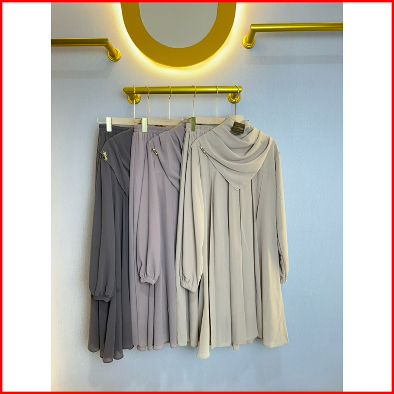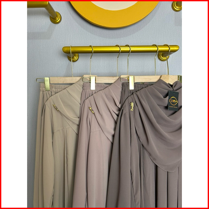 Dfm - Alyka One Set Rok Pasmina Segiempat Gamis One Set Bahan Ceruty Armani Baby Doll Full Puring