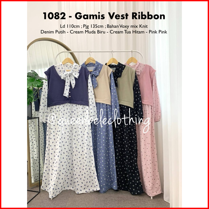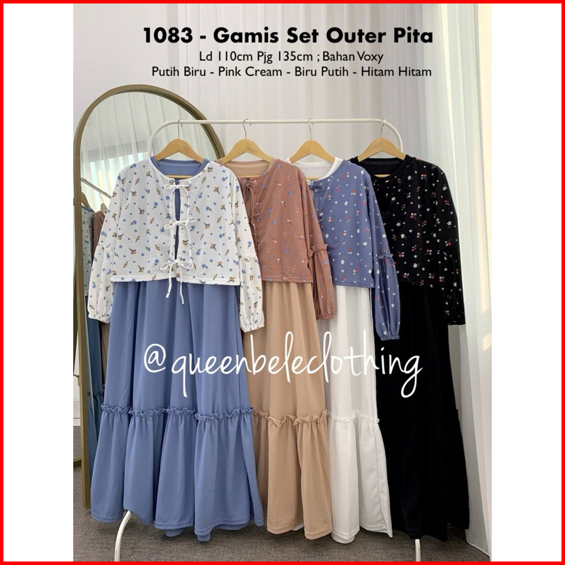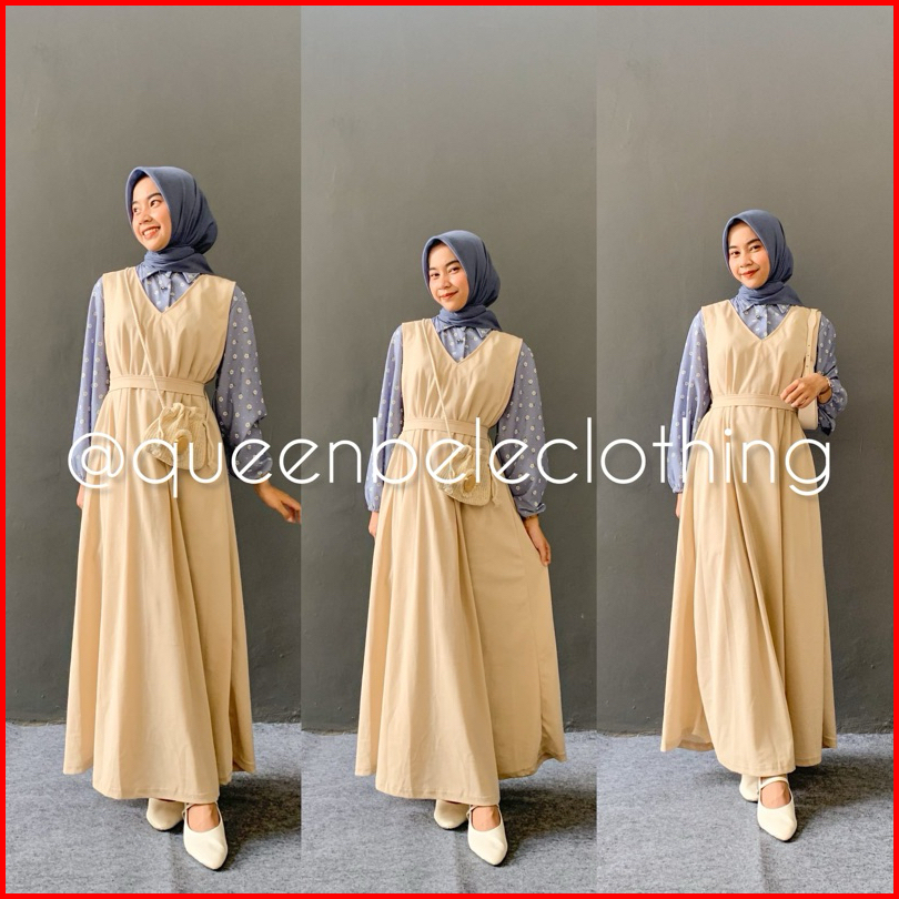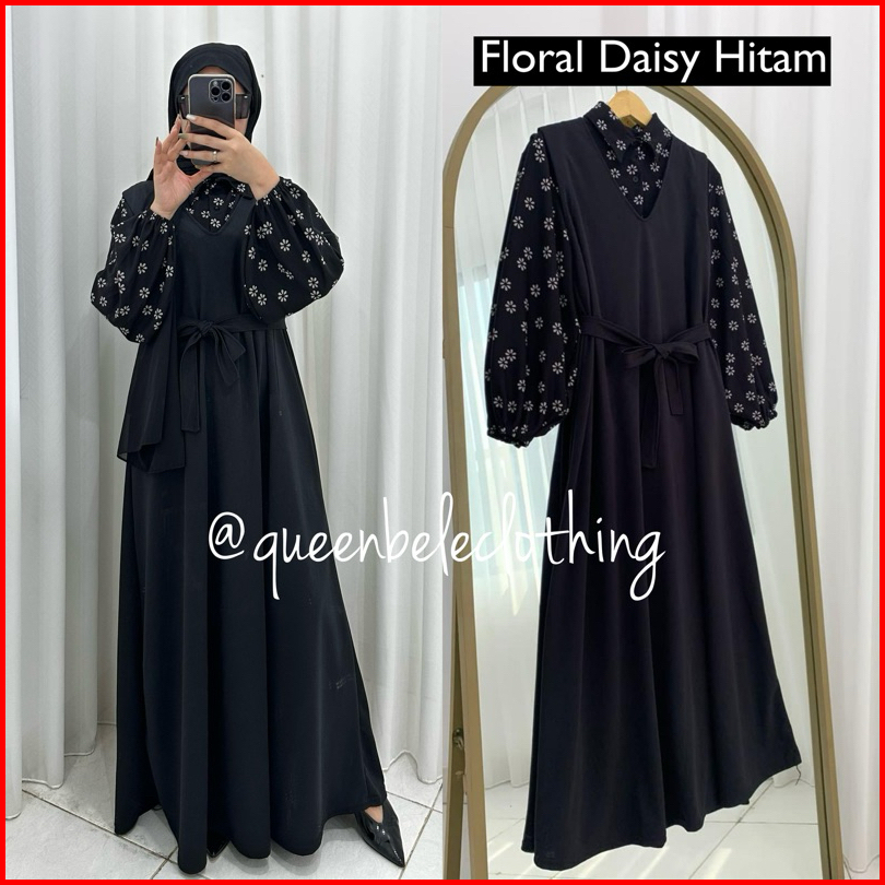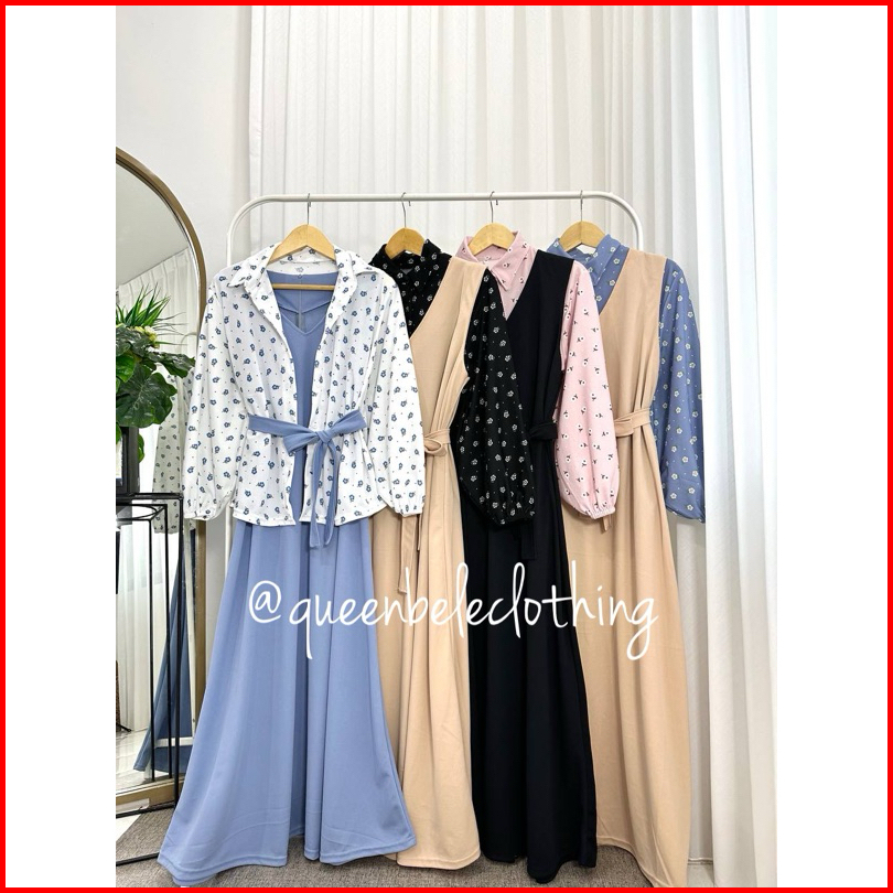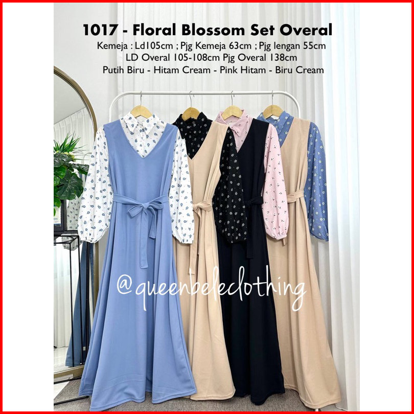 Floral Blossom Set Overall Dress 1017 - Setelan Gamis Overall Rok Set Kemeja