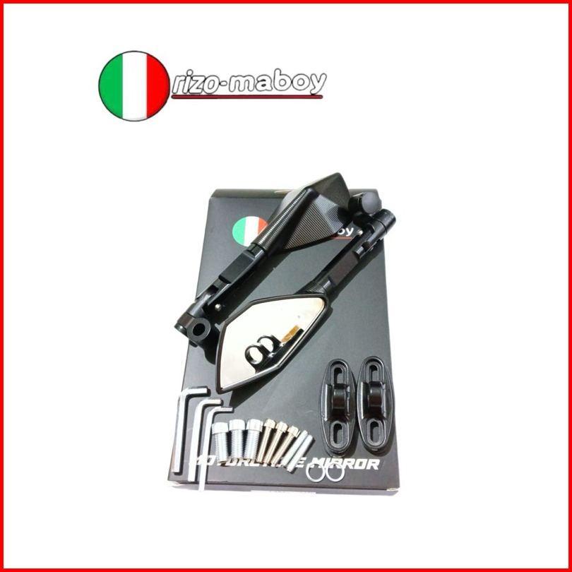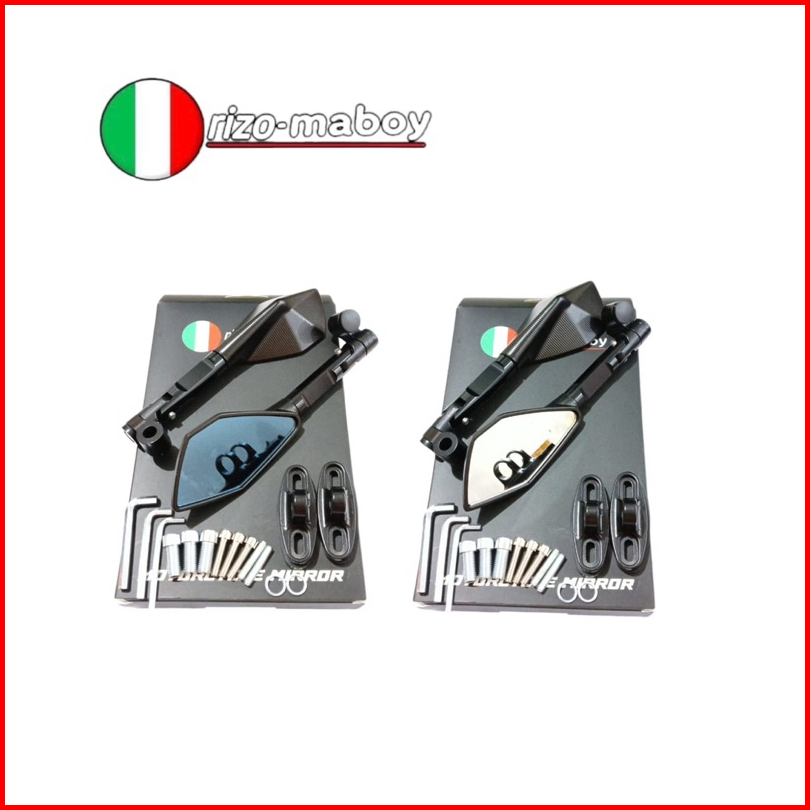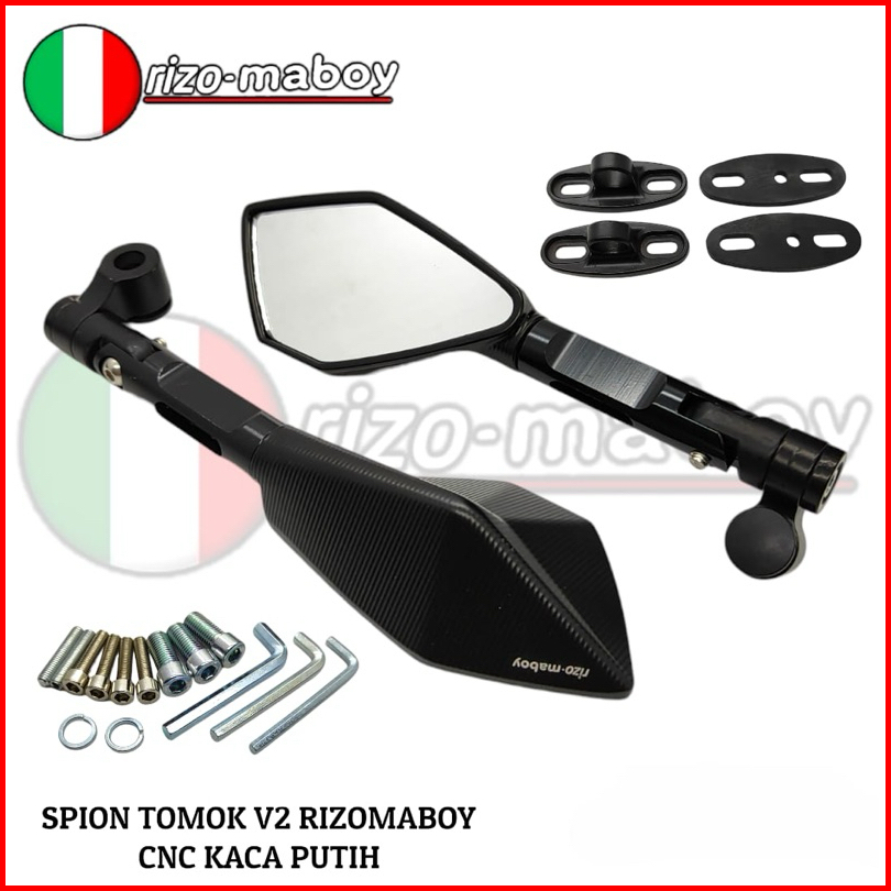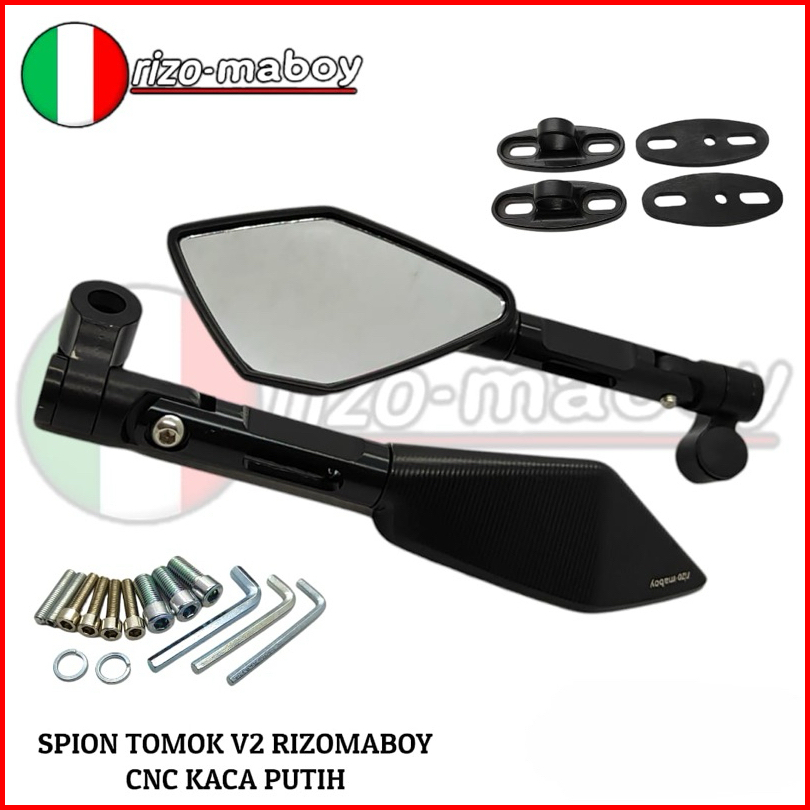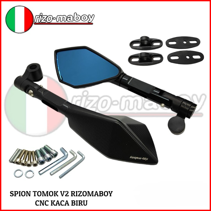 Rizo-maboy Racing - Spion V2 Rizo-maboy Full Cnc Black Series Kaca Biru Dan Kaca Putih Universal Semua Jenis Motor