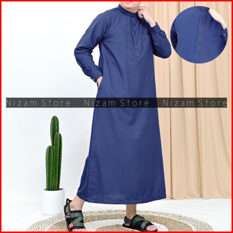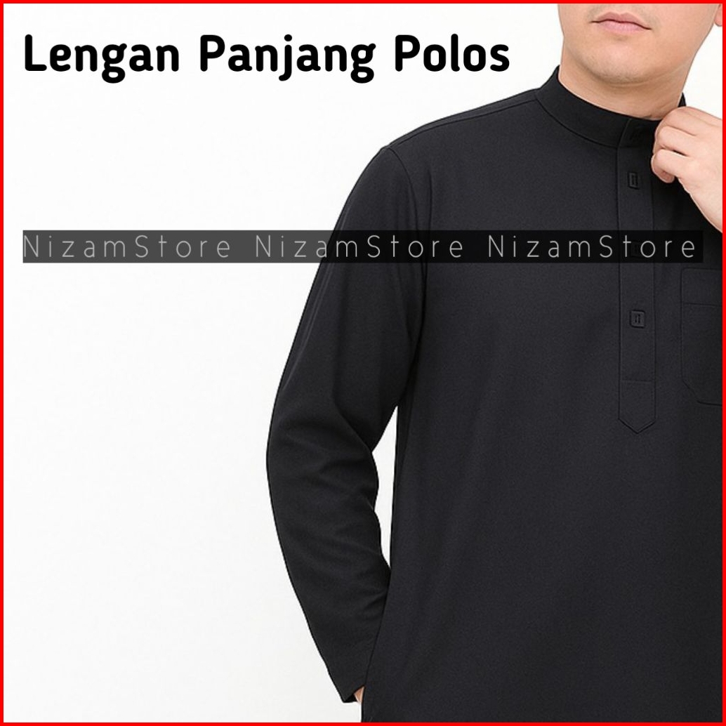 Gamis Pria Jubah Polos Lengan Manset Kancing Snap Panjang Pria Dewasa Muslim Putih Hitam Haji Umroh