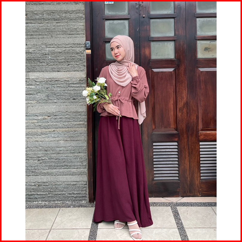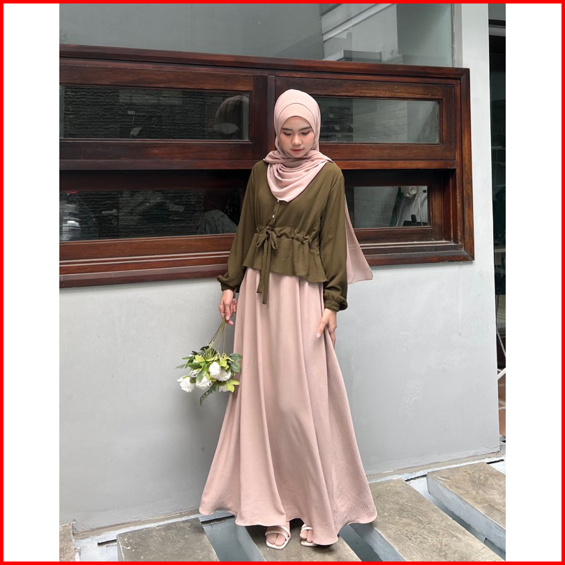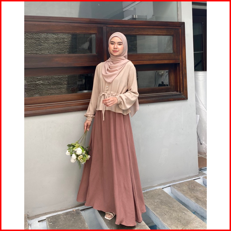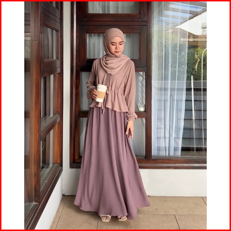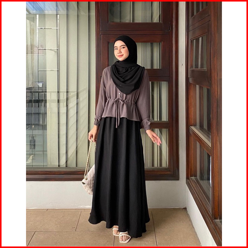 Dafinty - Rosella Dress Bahan Premium Crinkle Gamis Wanita Remaja Simpel Kekinian