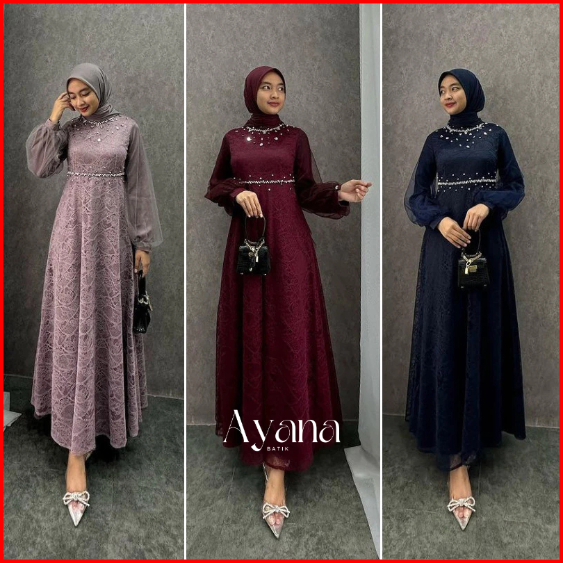 Dress Exclusive Gamis Nadine Lebaran Terbaru Dress Kondangan Gamis Brukat Maxi Pesta Lamaran Tunangan Kekinian Seragam B