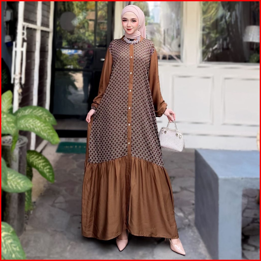 Shafiya Dress Gamis Motif Terbaru Kekinian Size Standard-jumbo Pakaian Muslim Wanita Bahan Rayon Twill Ori Premium Bahan