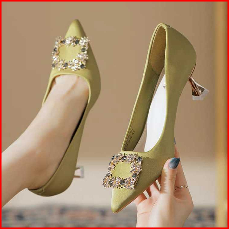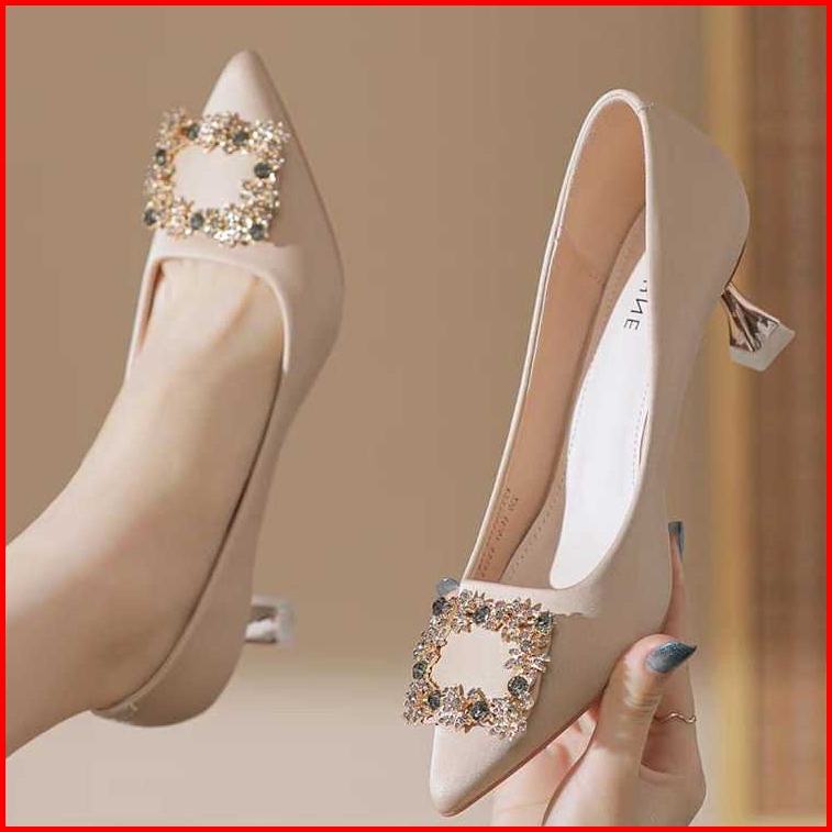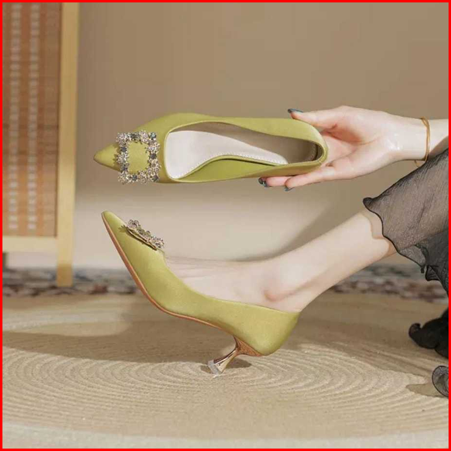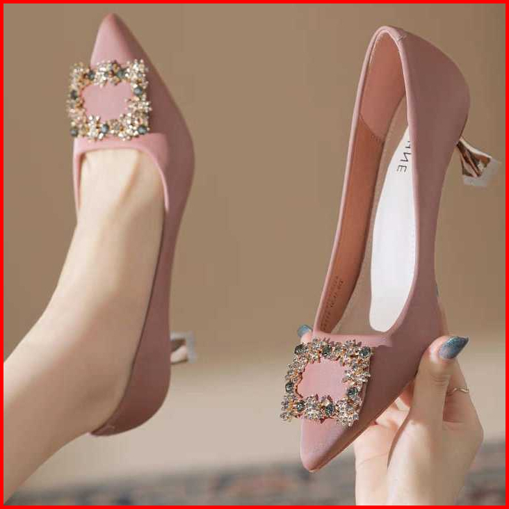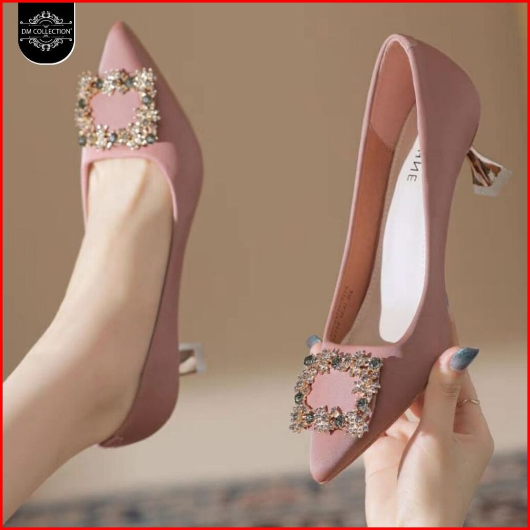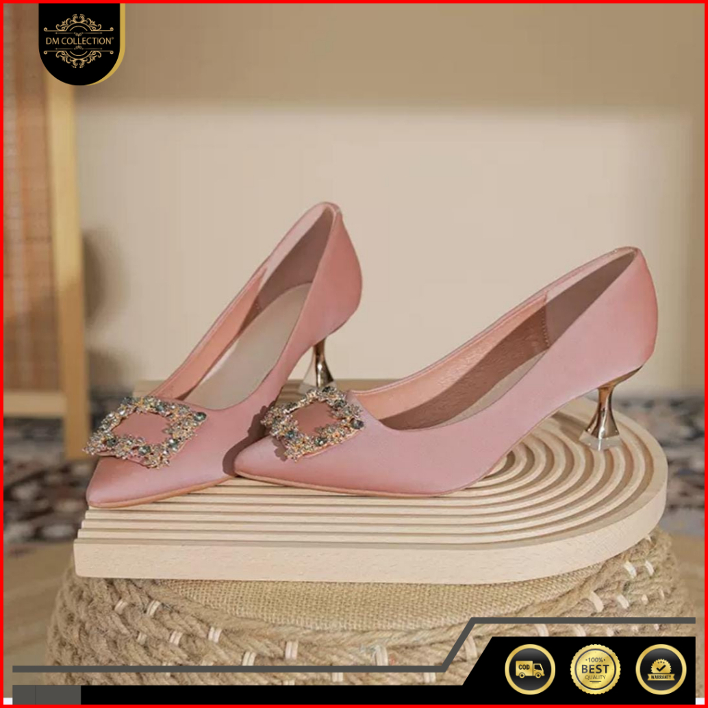 Dm Shopp - Sepatu Heels Pesta Wanita Slip On Variasi Kotak Mewah High Heels Kantor Premium Hak 6 Cm Eg 024