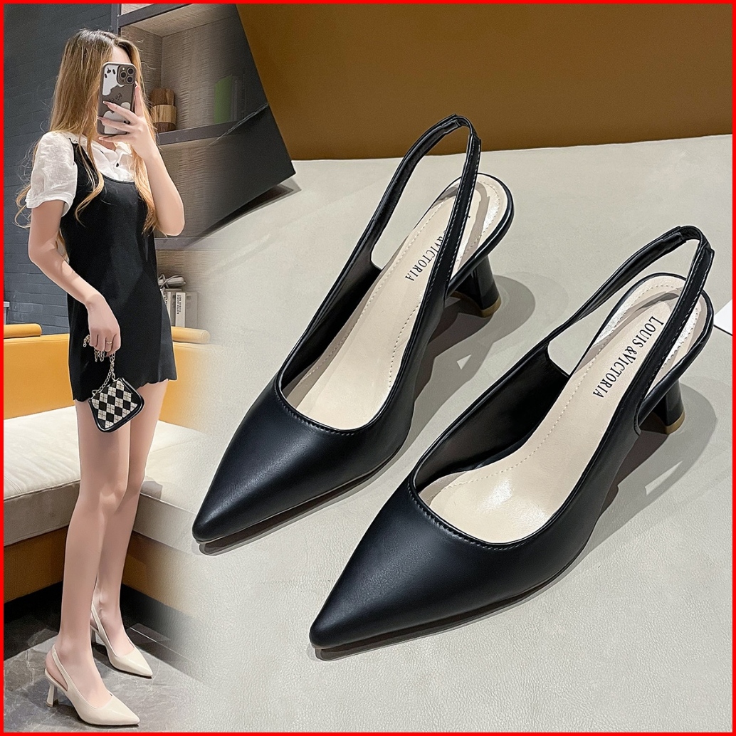 Louis Victoria Sepatu Wanita Kasual High Quality Sepatu Kerja Sepatu Hitam Beige Lwl7325