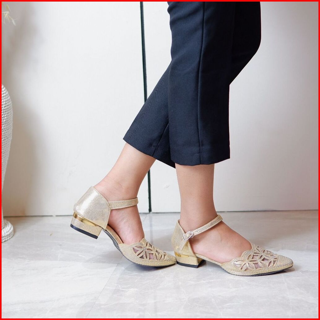 Bfs Sepatu Heels Ootd Wedding Simple Modis Sandal Wanita Kekinian Bahan Glitter Spt 013