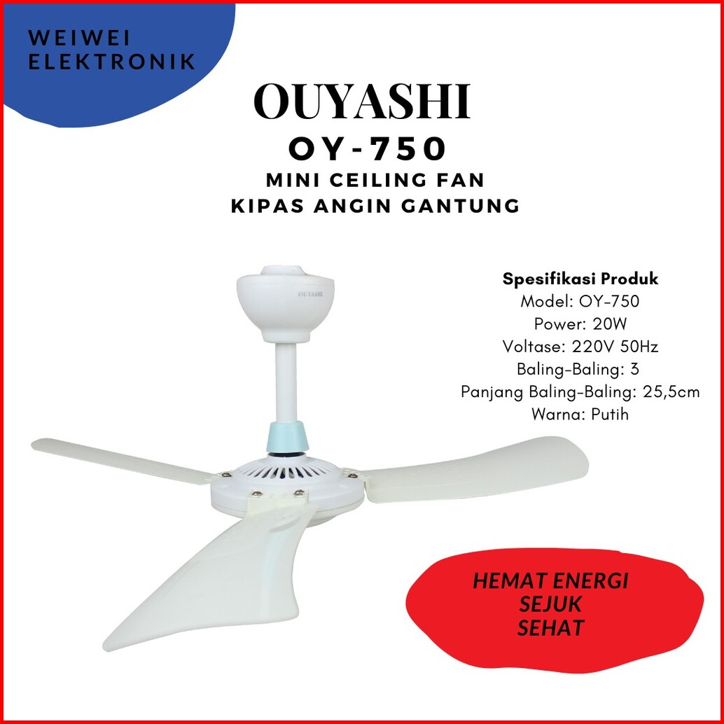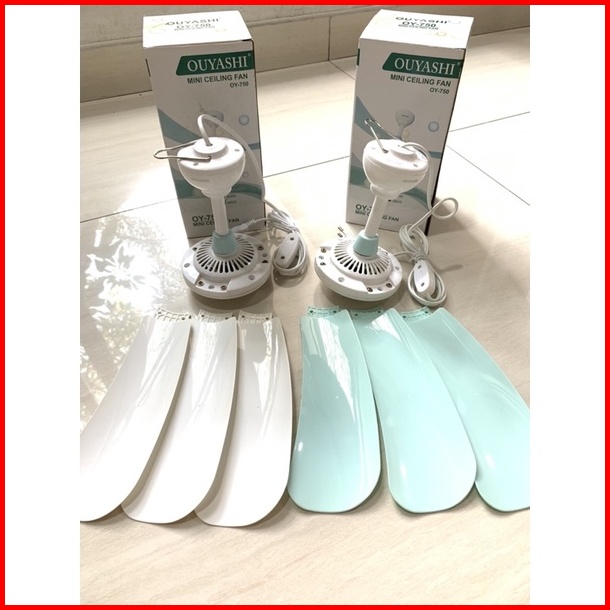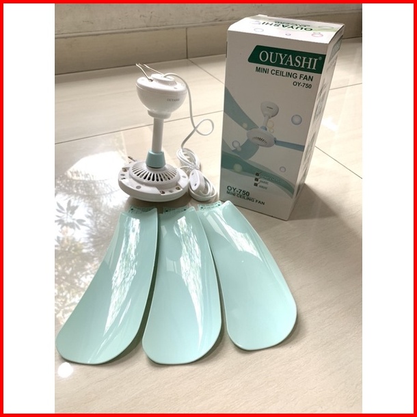 Kipas Angin Gantung Ouyashi Oy-750 Warna Putih Biru Muda Real Pic