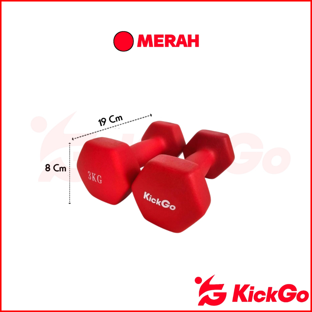 Kickgo Barbel 3kg Dumbell Barbell Dumbbell Vinyl Bahan Besi Neoprene Anti Slip 3 Kg 1 Buah