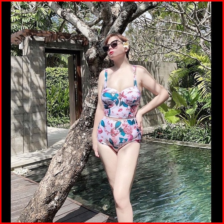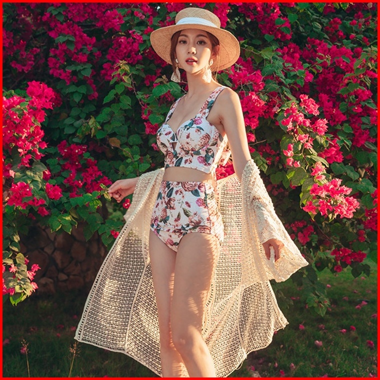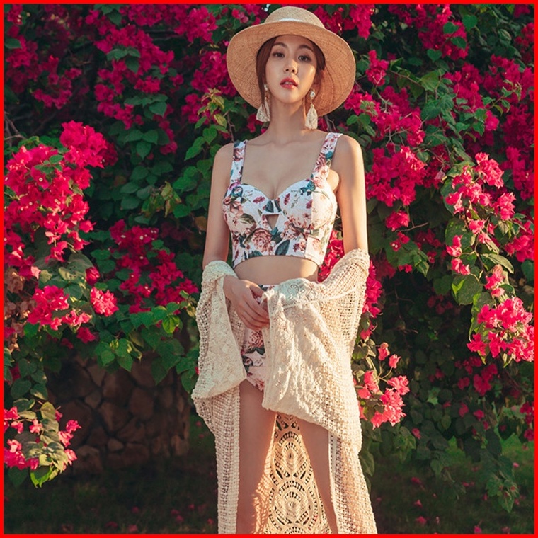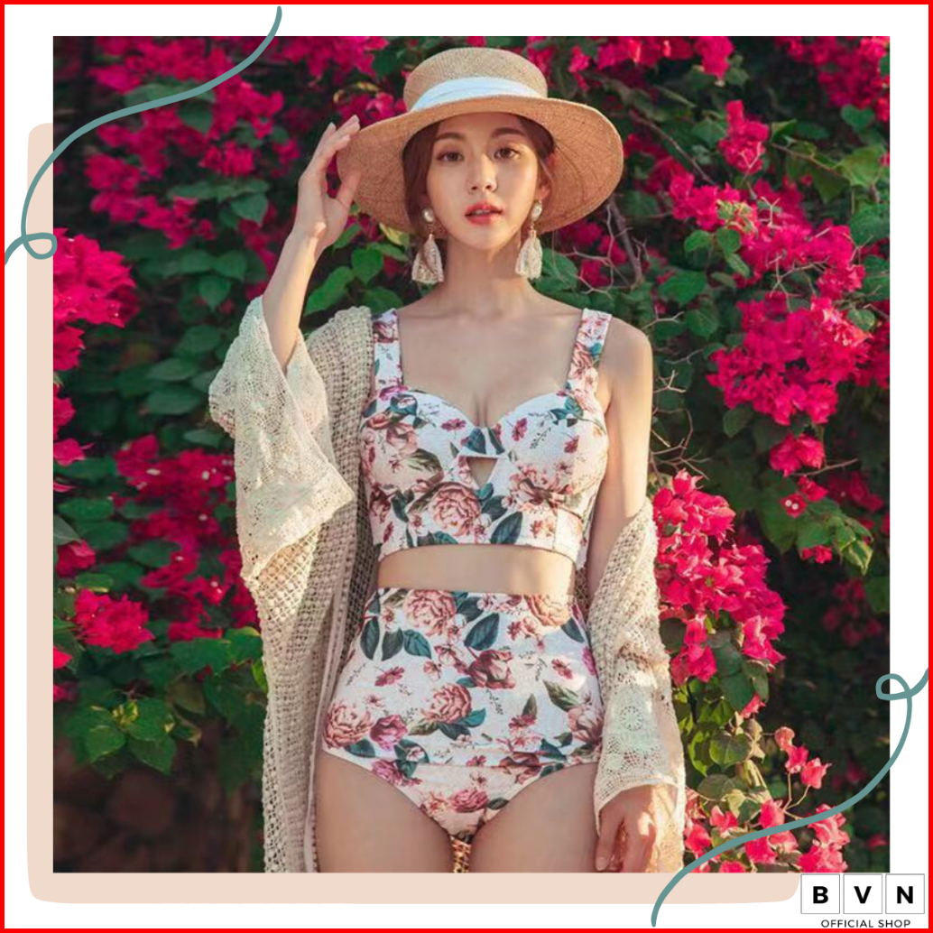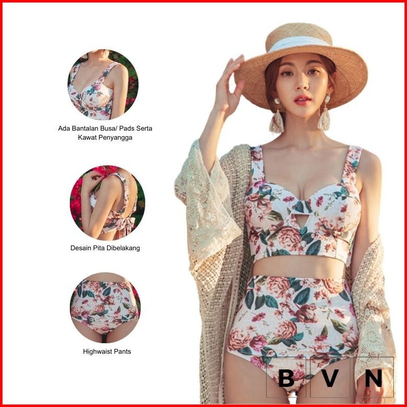 Bvn Swimsuit Baju Renang Set Bikini Wanita Model Split Dan Motif Floral Bergaya Retro 8006