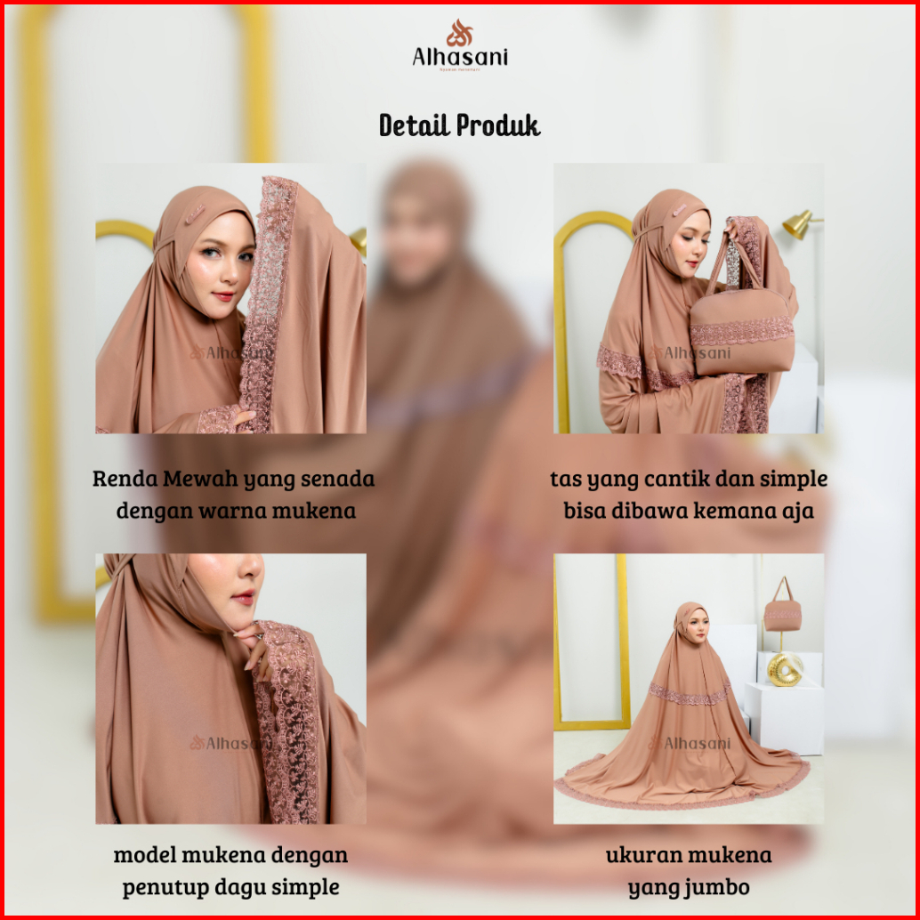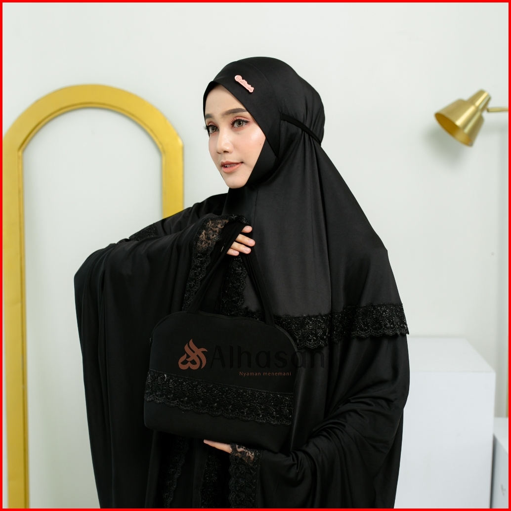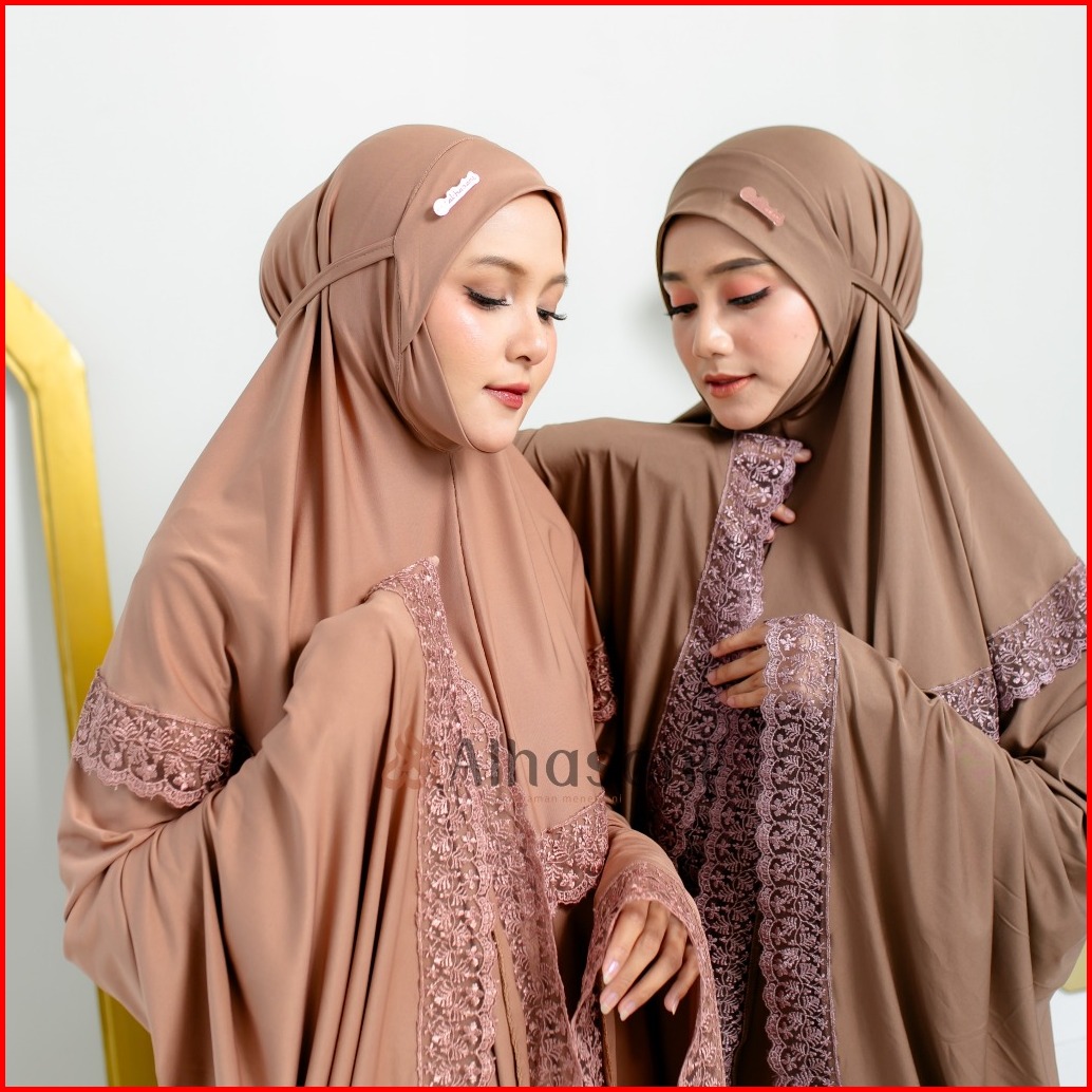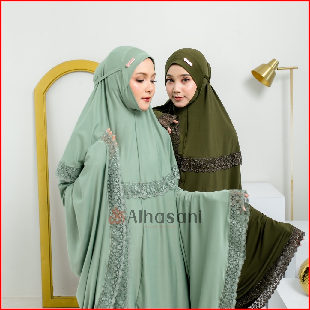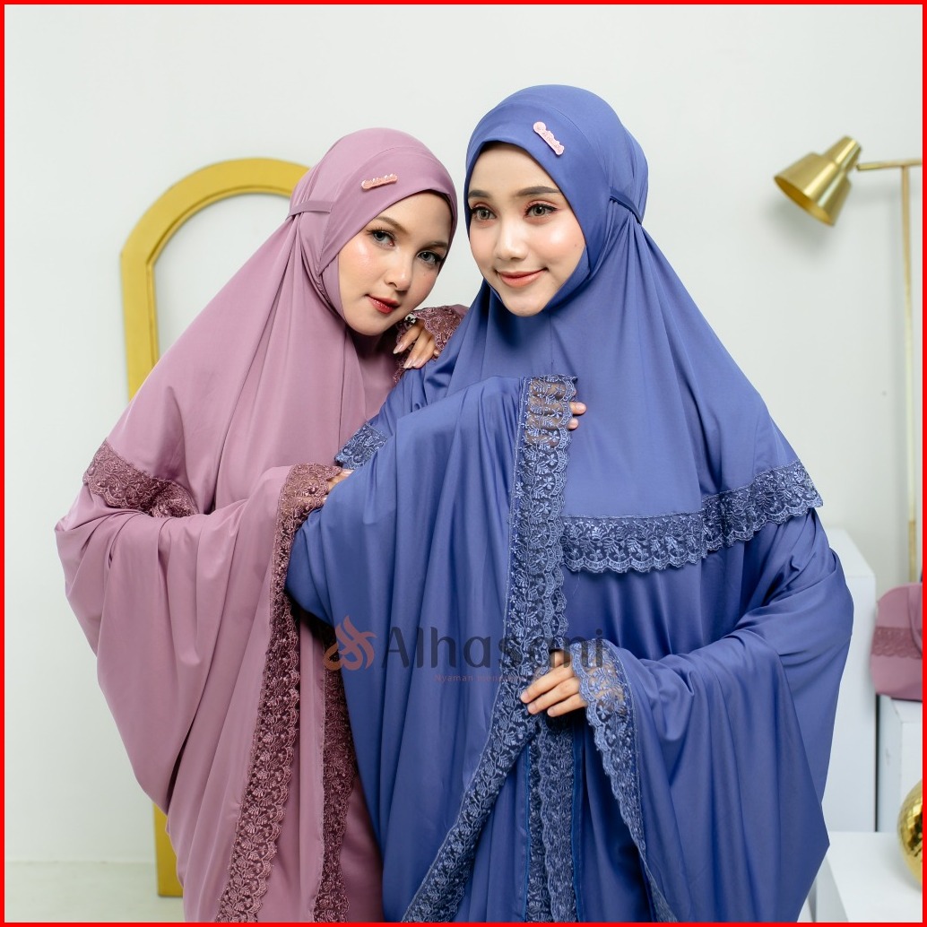 Gratis Scrunchie Alhasani Mukena Maura Bahan Mayyora Jumbo Dagu Tertutup Renda Mewah Mukenah Dewasa Bahan Adem Nyaman Hi