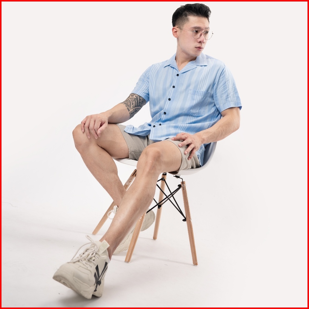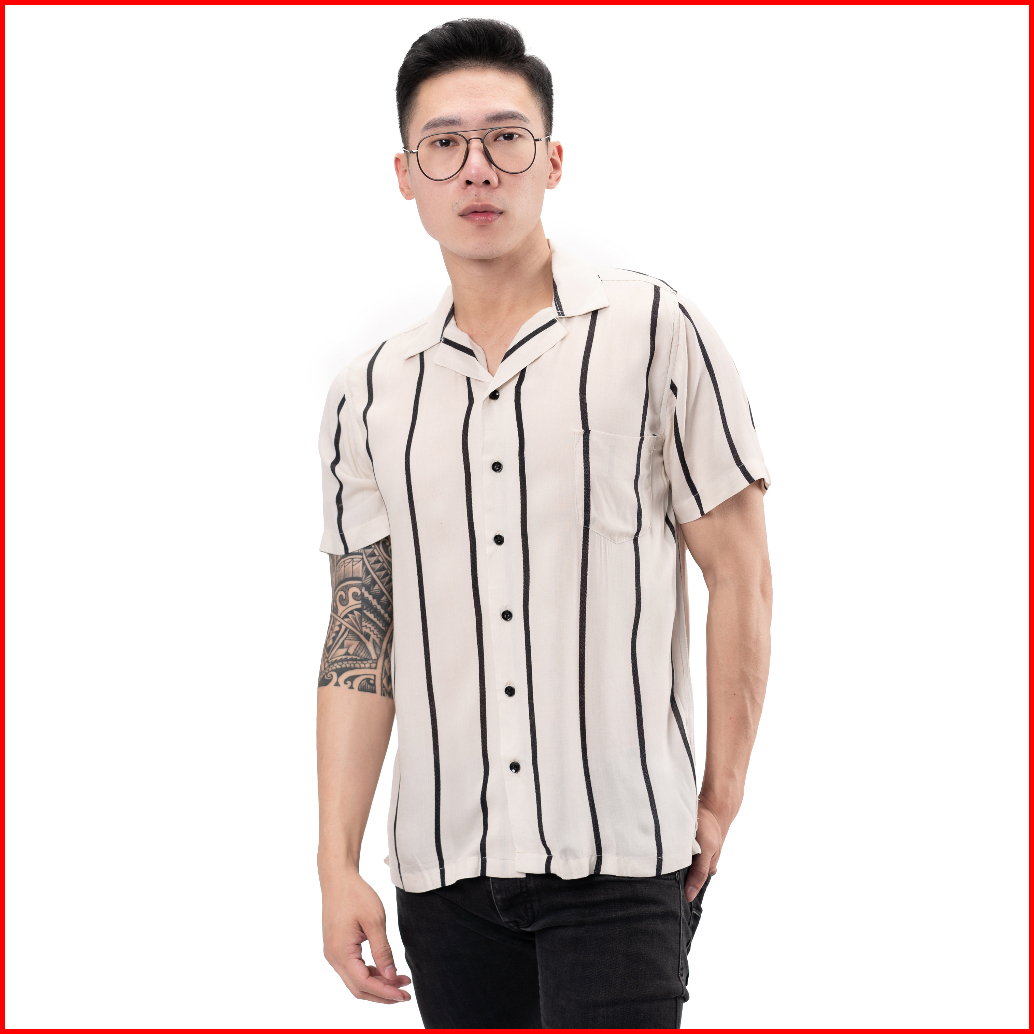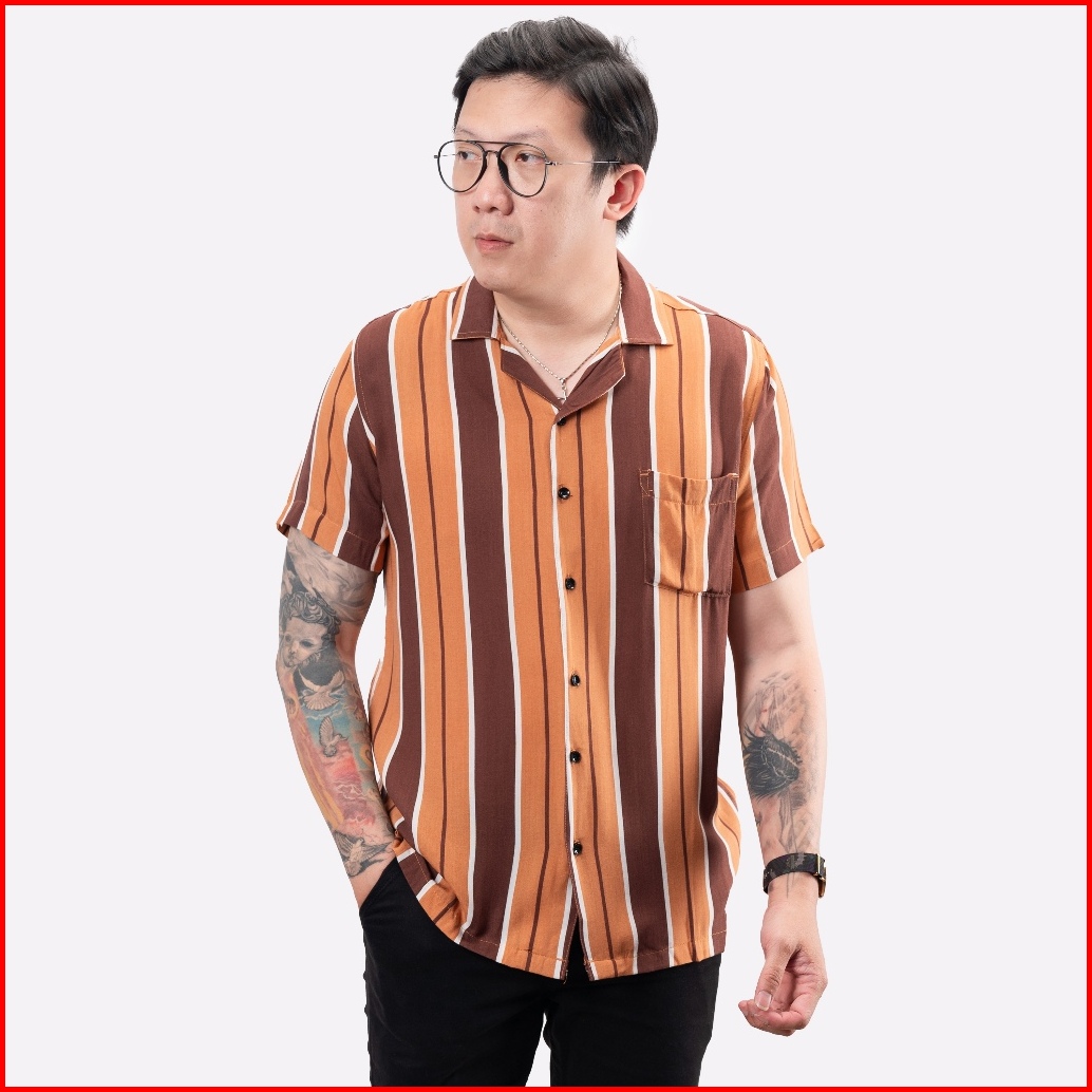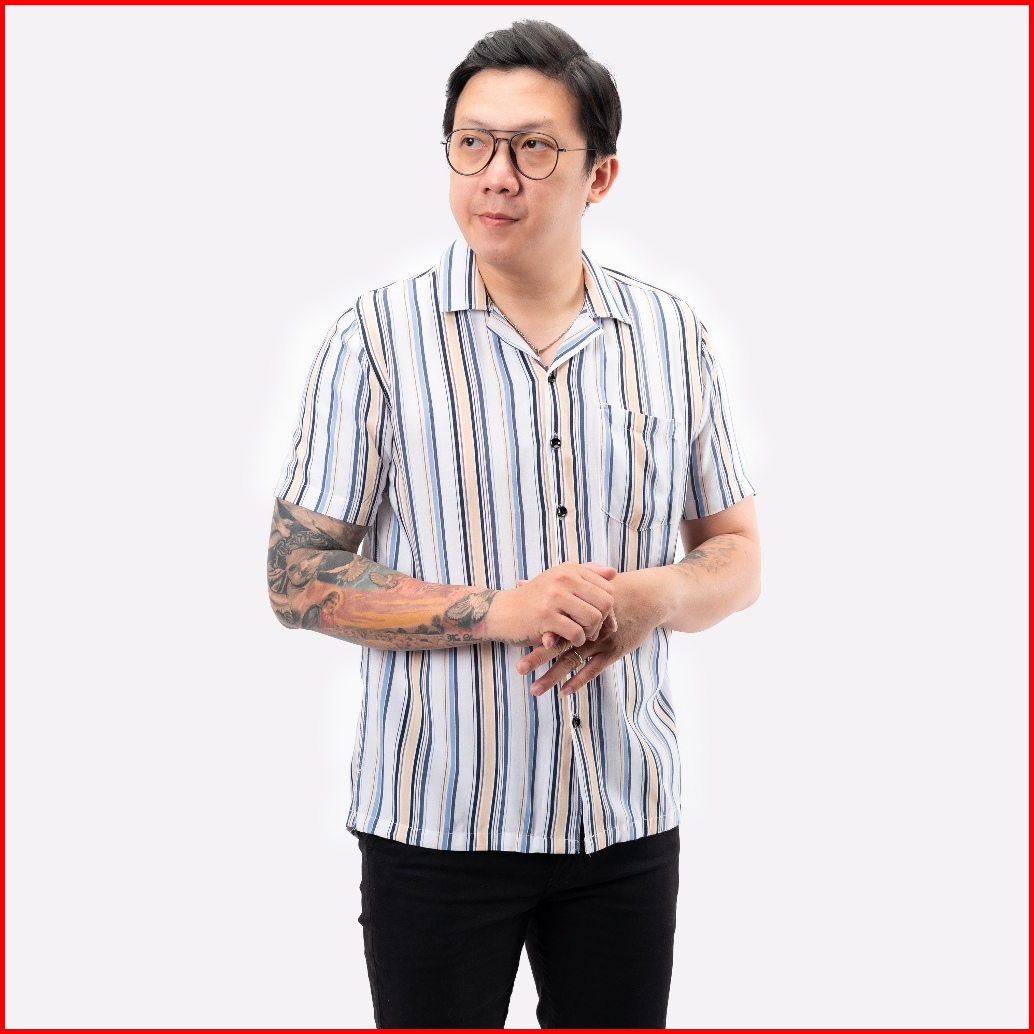 Jane Frey Clothing Kemeja Salur Lengan Pendek Pria 7890 Kemeja Garis Wispie M-xl