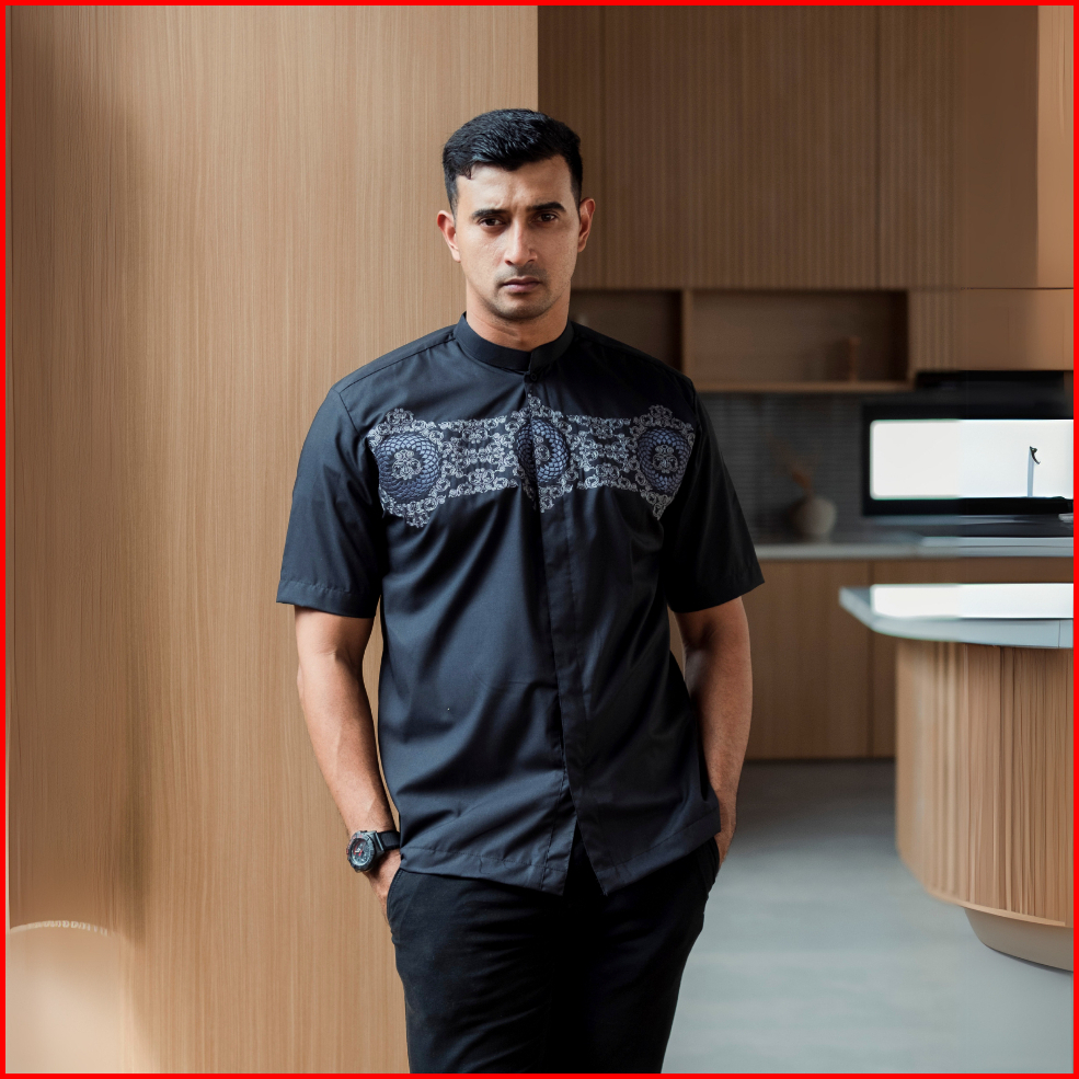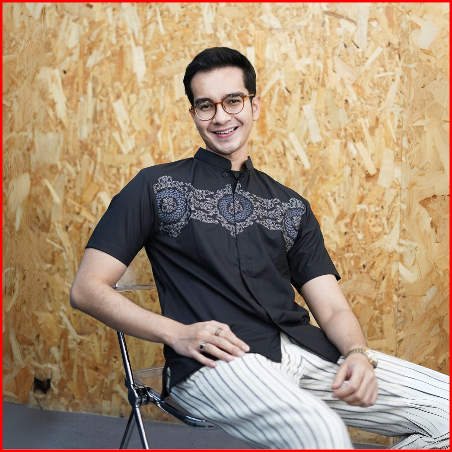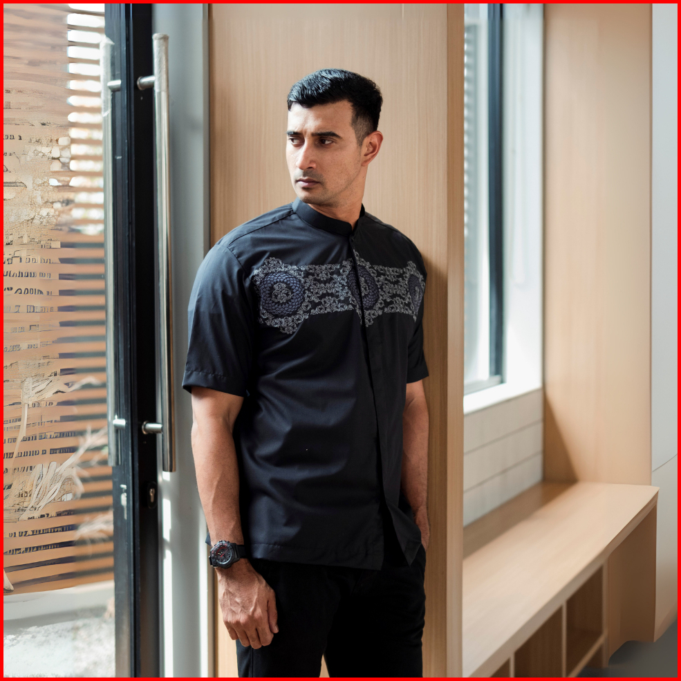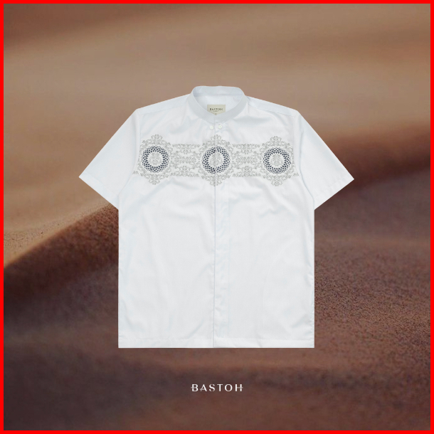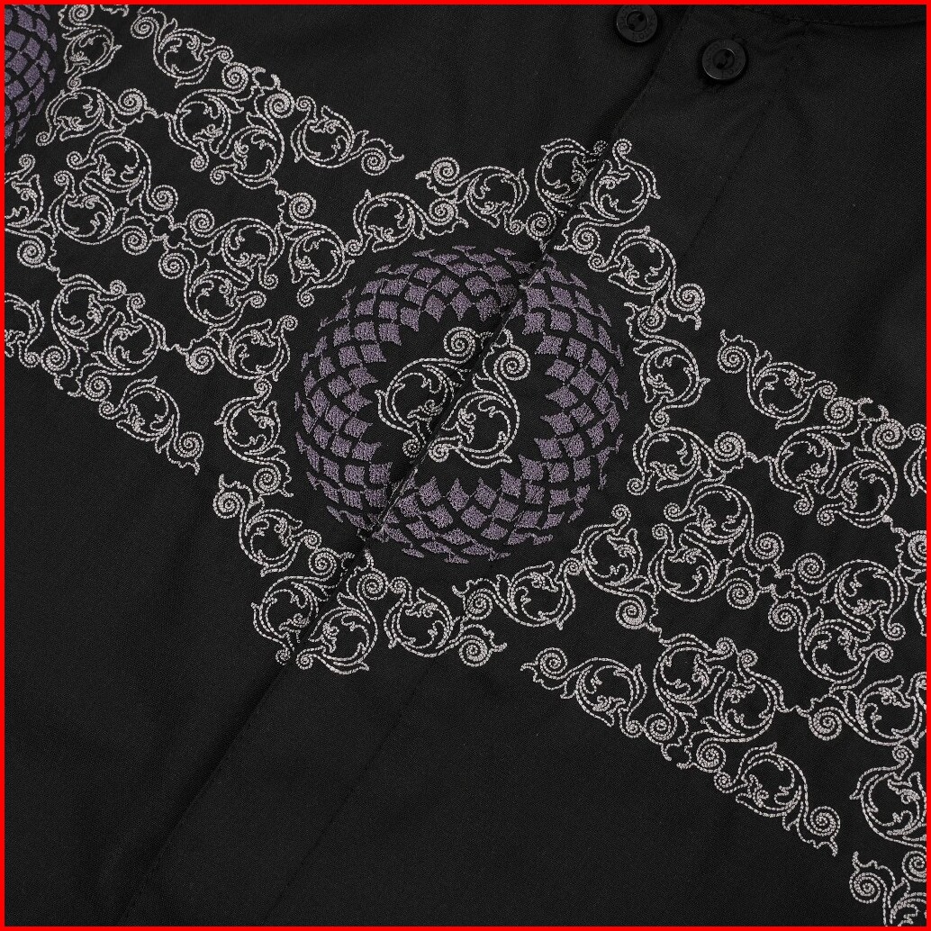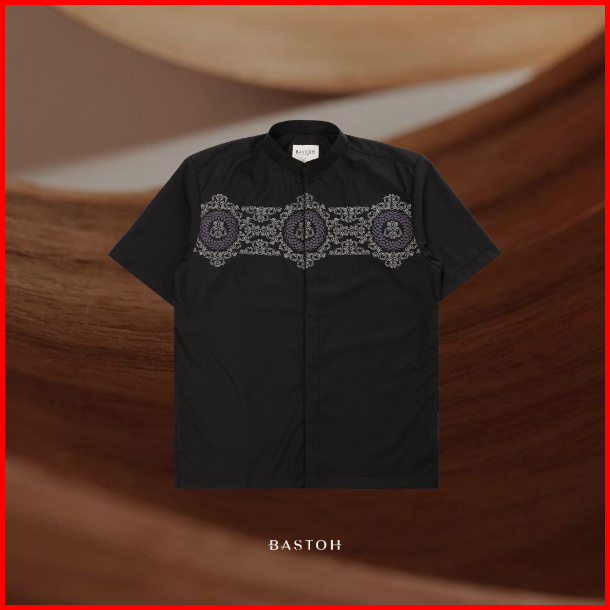 Bastoh Baju Koko Bordir Pria Muslim Lengan Pendek Mauza Hitam