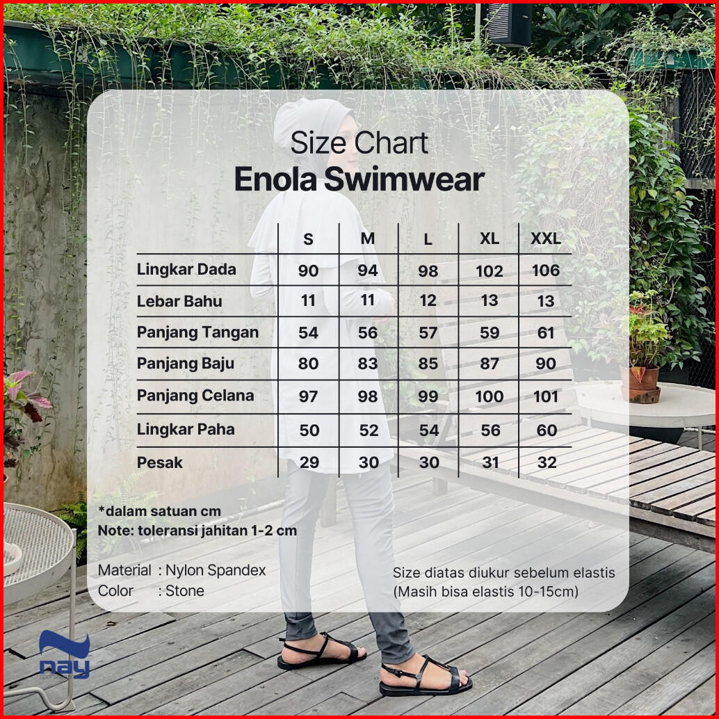 Baju Renang Wanita Muslimah Premium Anti Ketat - Enola Swimwear Stone