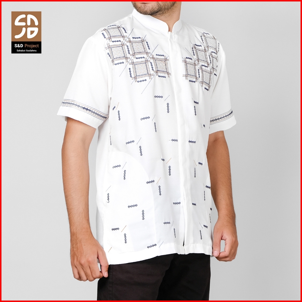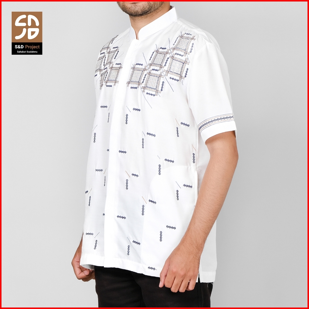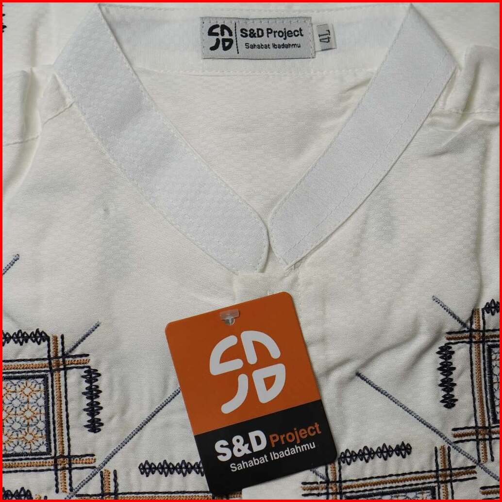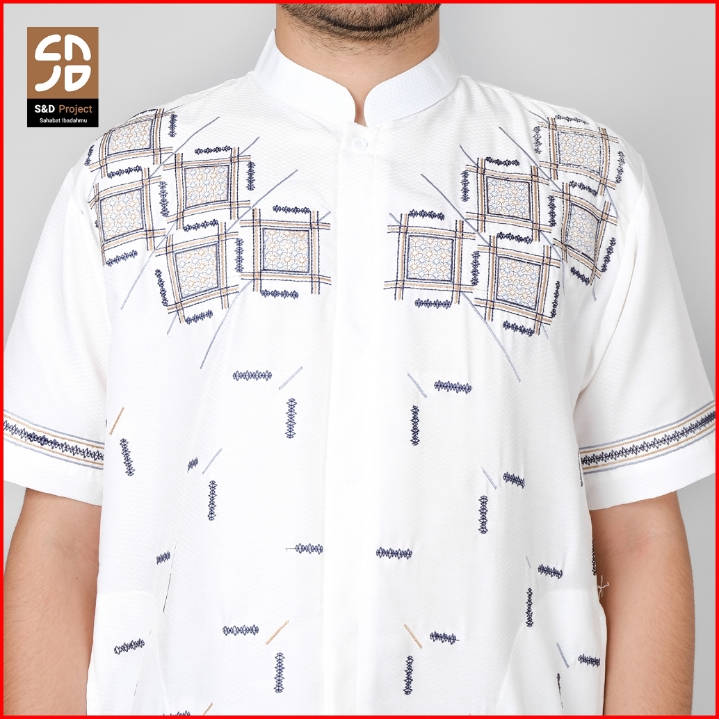 S D Project Baju Kemeja Koko Bahan Polikatun Bordir Jumbo Lengan Pendek Ukuran S M L Xl Xxl 3xl 4xl - Putih Tulang