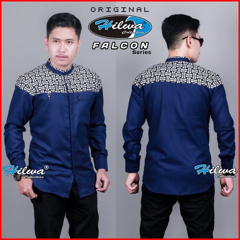 Baju Koko Hilwa Original Terbaru Motif Falcon Seragam Hadroh Baju Muslim Pria Kemeja Batik Lengan Panjang