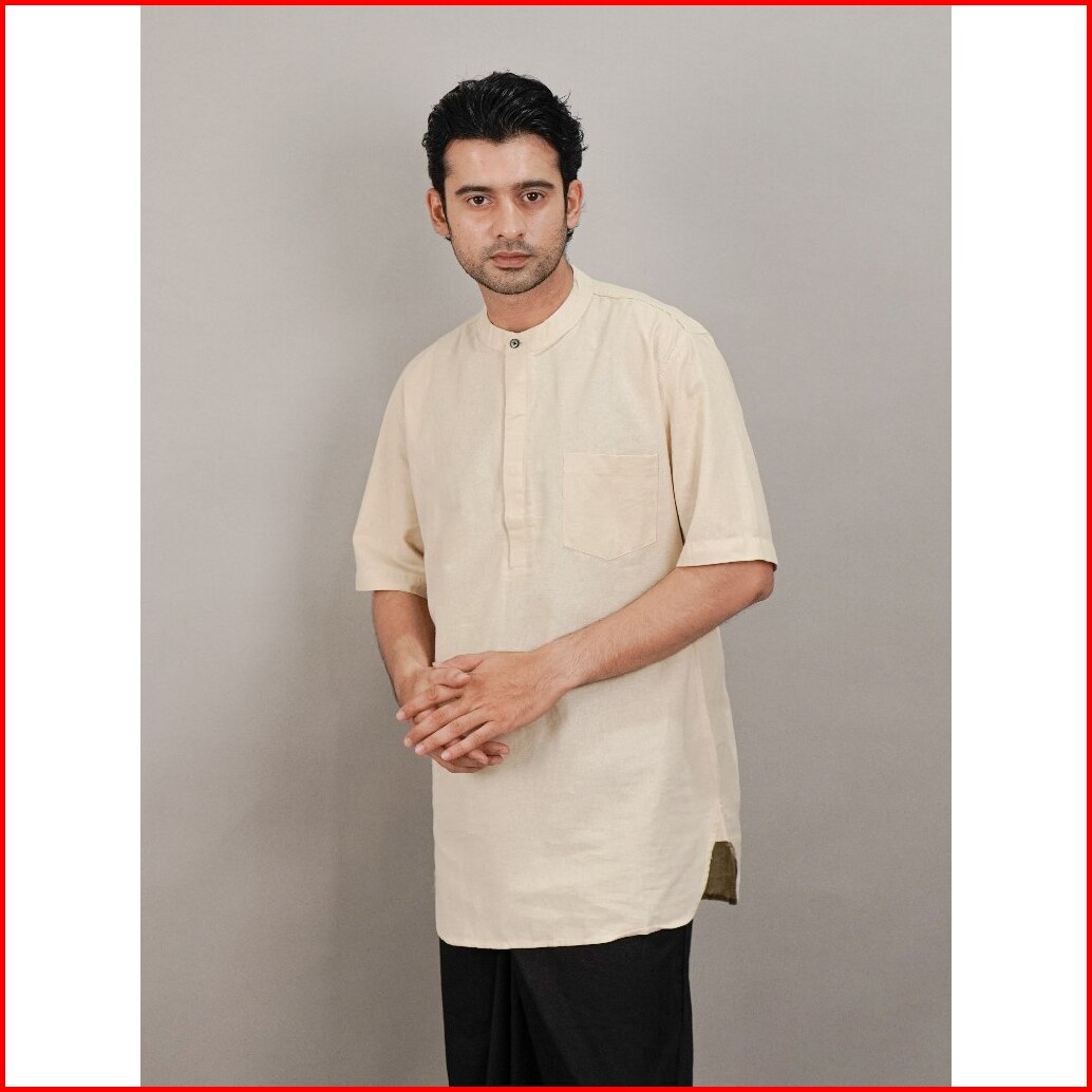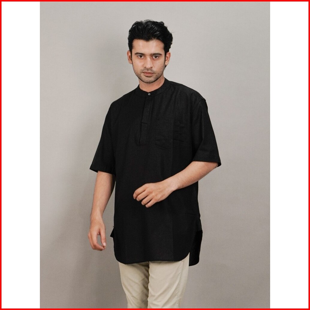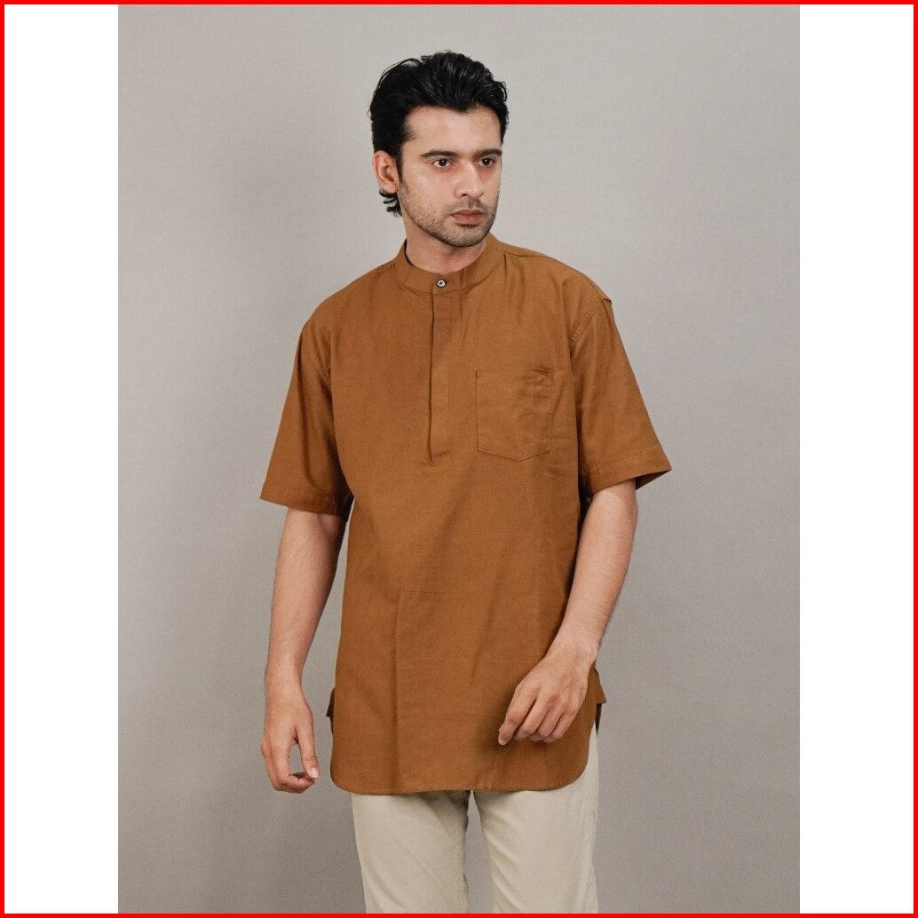 Swipe Up Kemeja Koko Kurta Pria Modern Lengan Pendek Rami Jafar