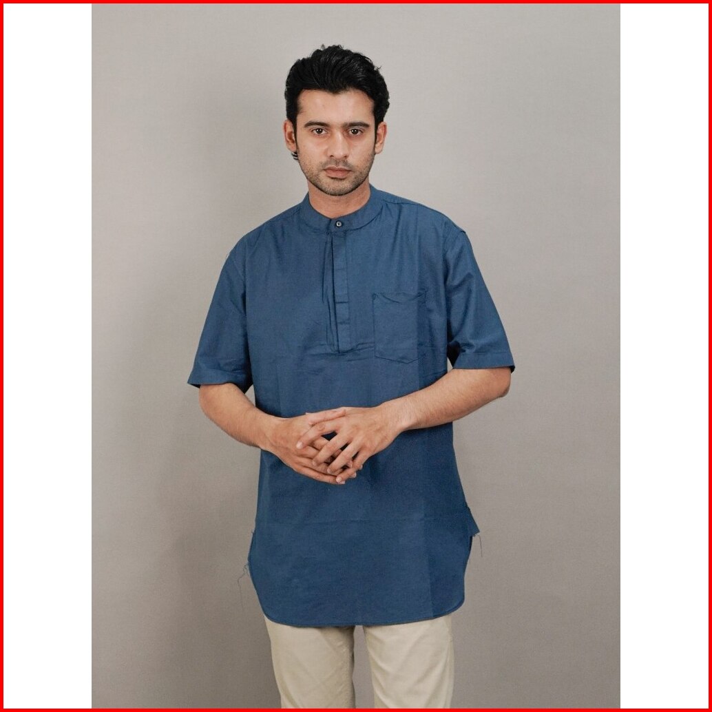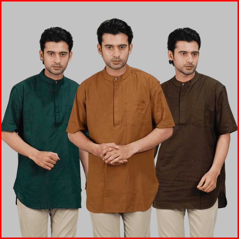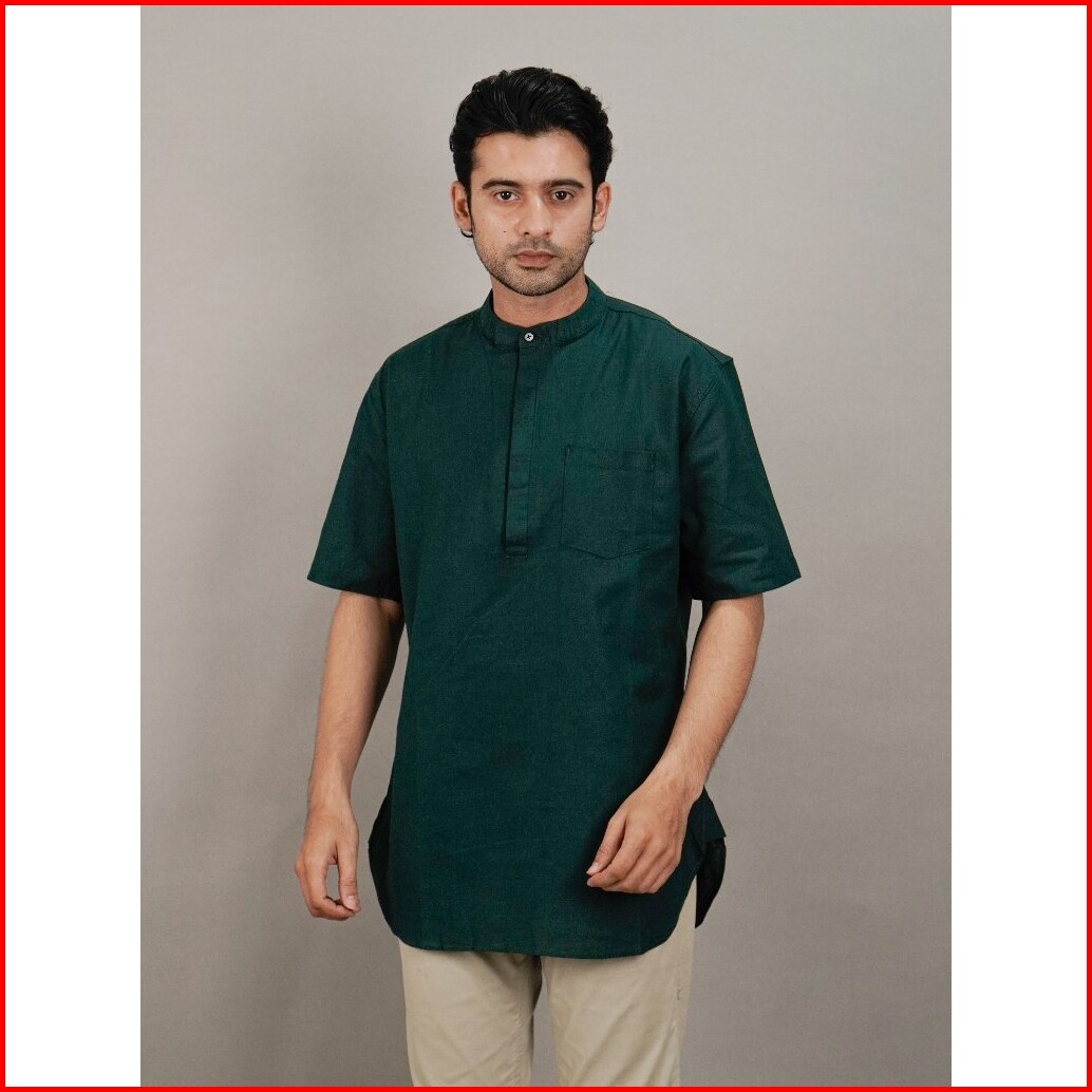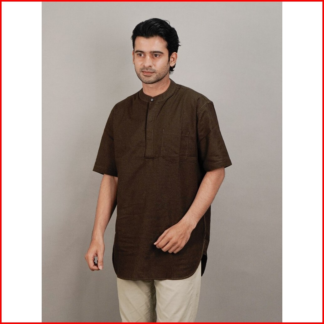 Swipe Up Kemeja Koko Kurta Pria Modern Lengan Pendek Rami Jafar