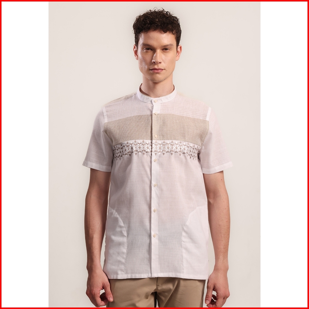 Moc Kemeja Koko Lengan Pendek Pria Calais - White