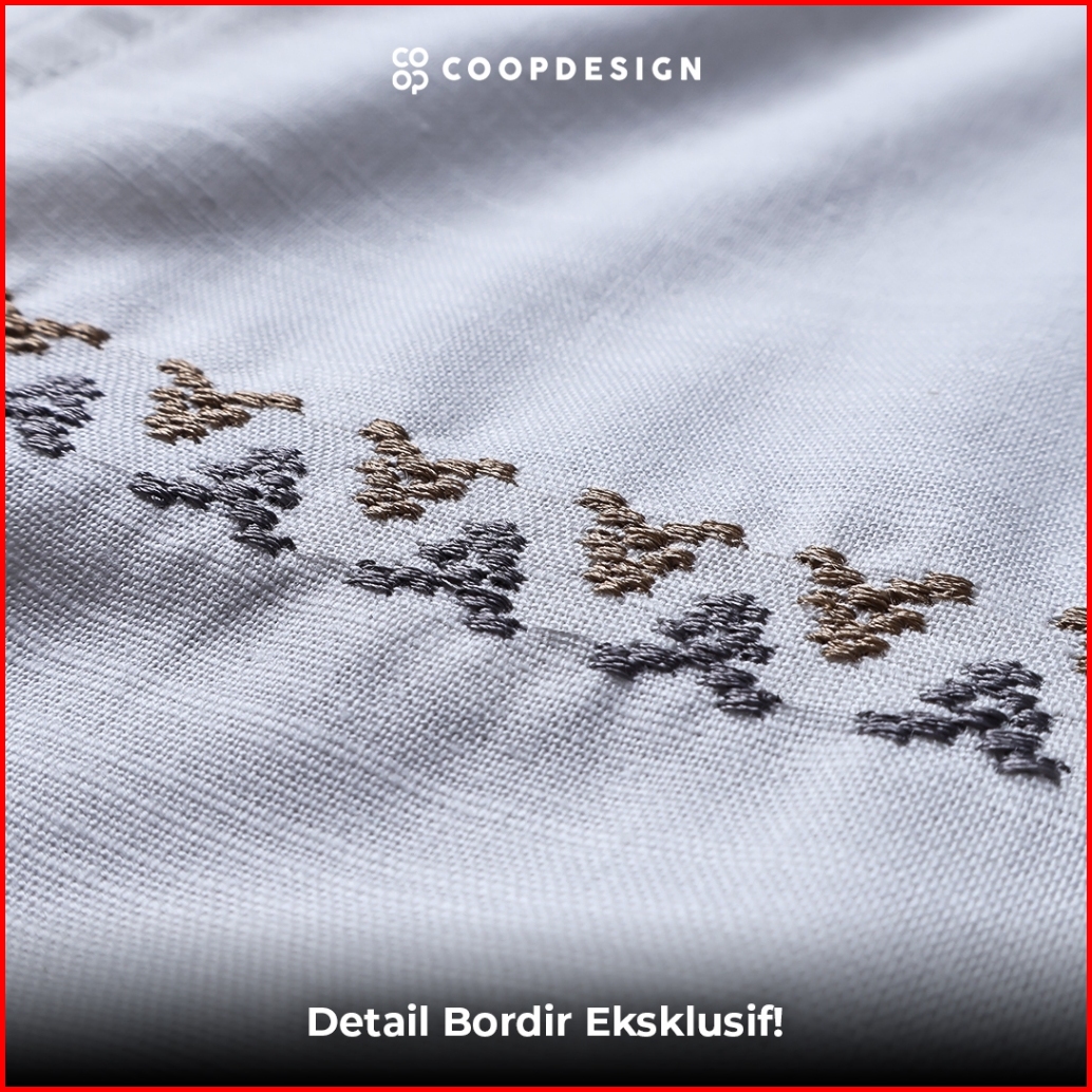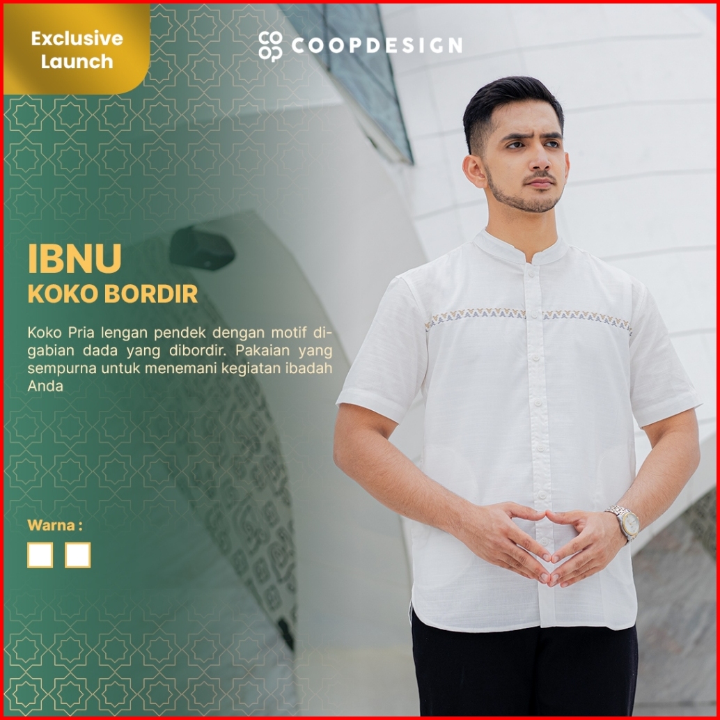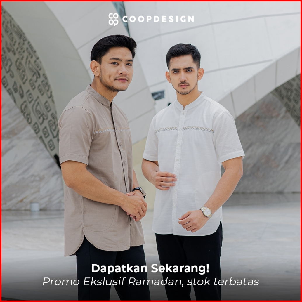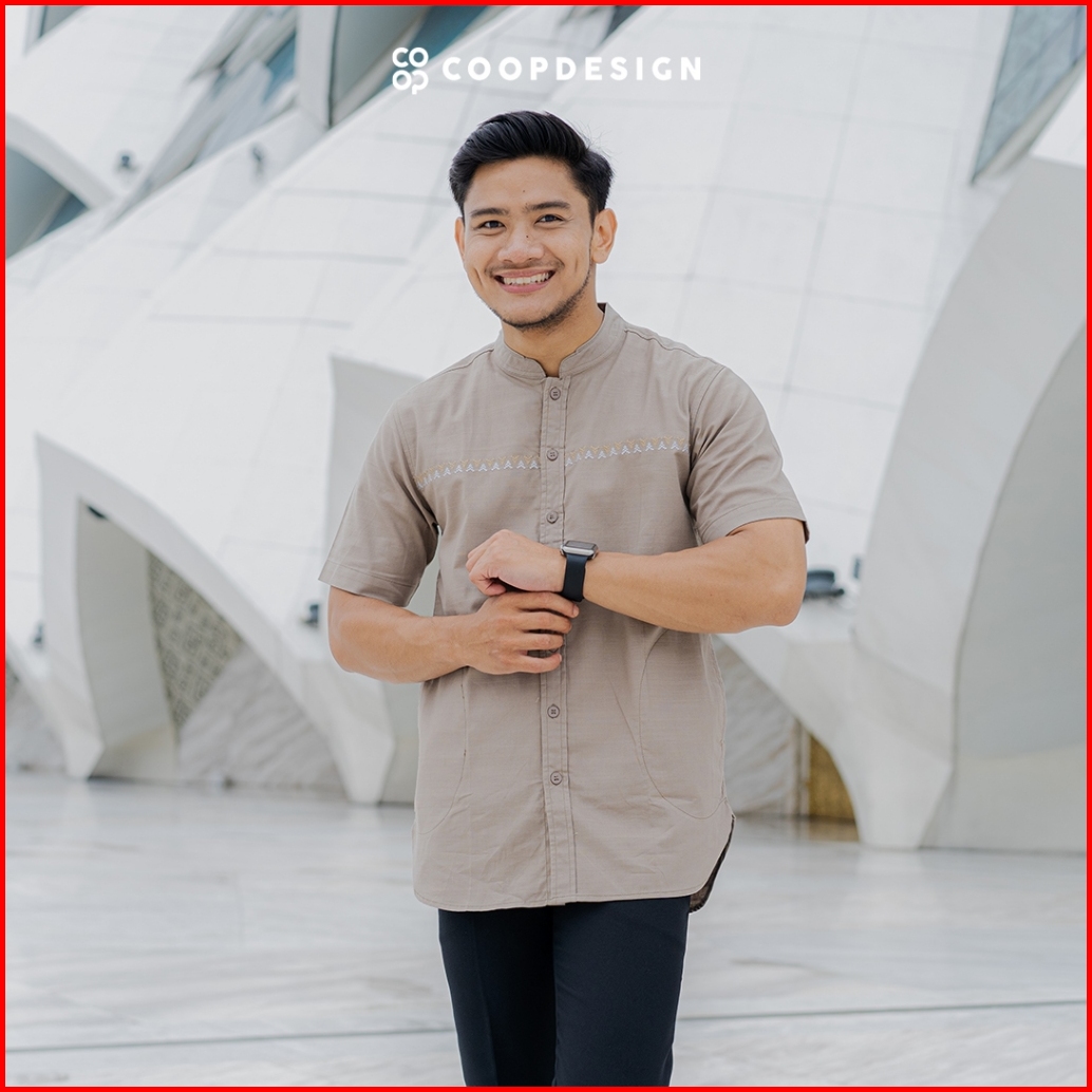 Exclusive Baju Lebaran 2025 Coop Design - Ibnu Koko Linen Kerah Changi Collarless Lengan Pendek Pria