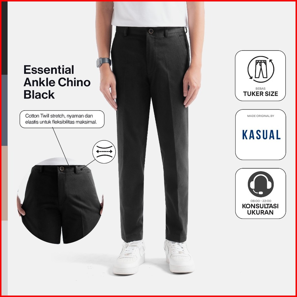 Kasual Celana Essential Ankle Chino Black