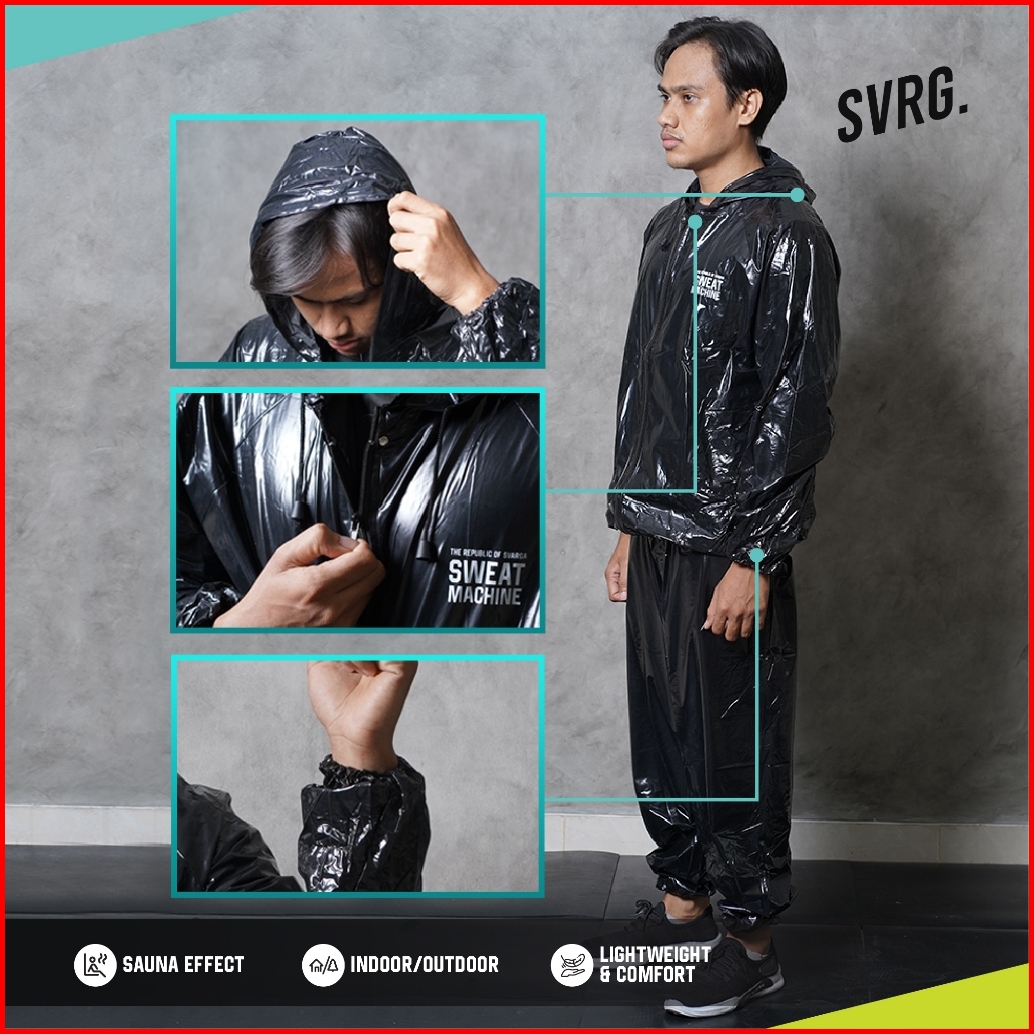 Sauna Suit Svrg Jaket Sauna - Baju Sauna - Setelan Jaket Celana Olahraga Sport Fitness Gym Running Cardio Training Unise