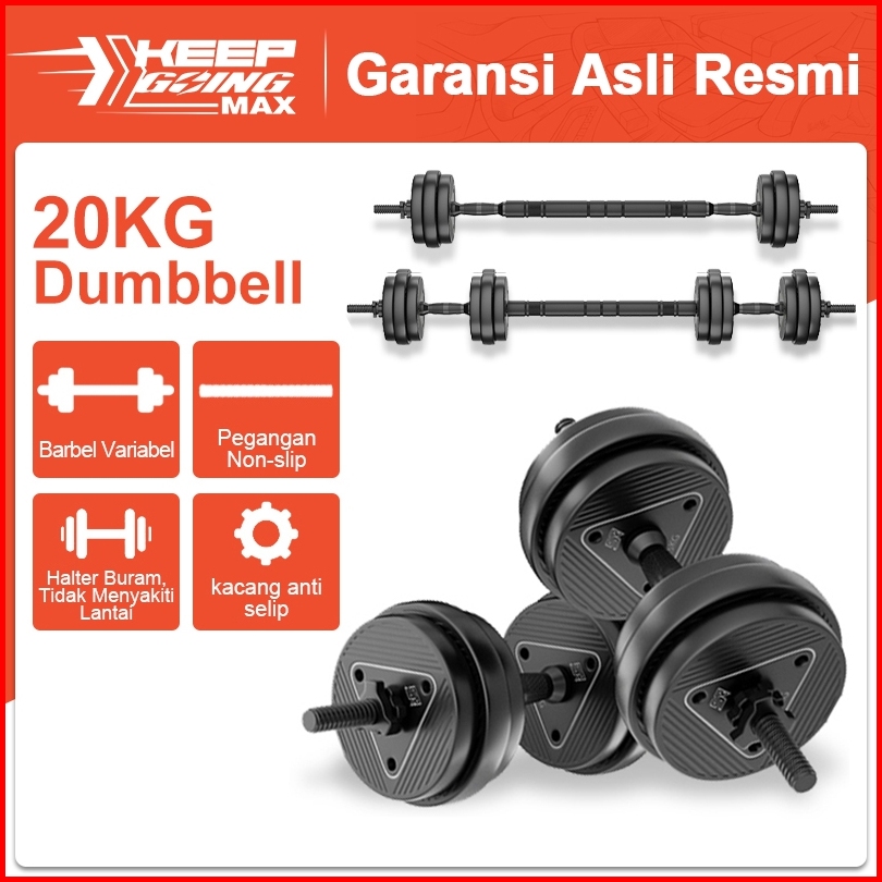 Keep Going Max Dumbbell Barbell 20kg Multi Function Dumbbell Alat Olahraga Rumahan Alat Futnes Gym Set Bisa Bongkar Pasa