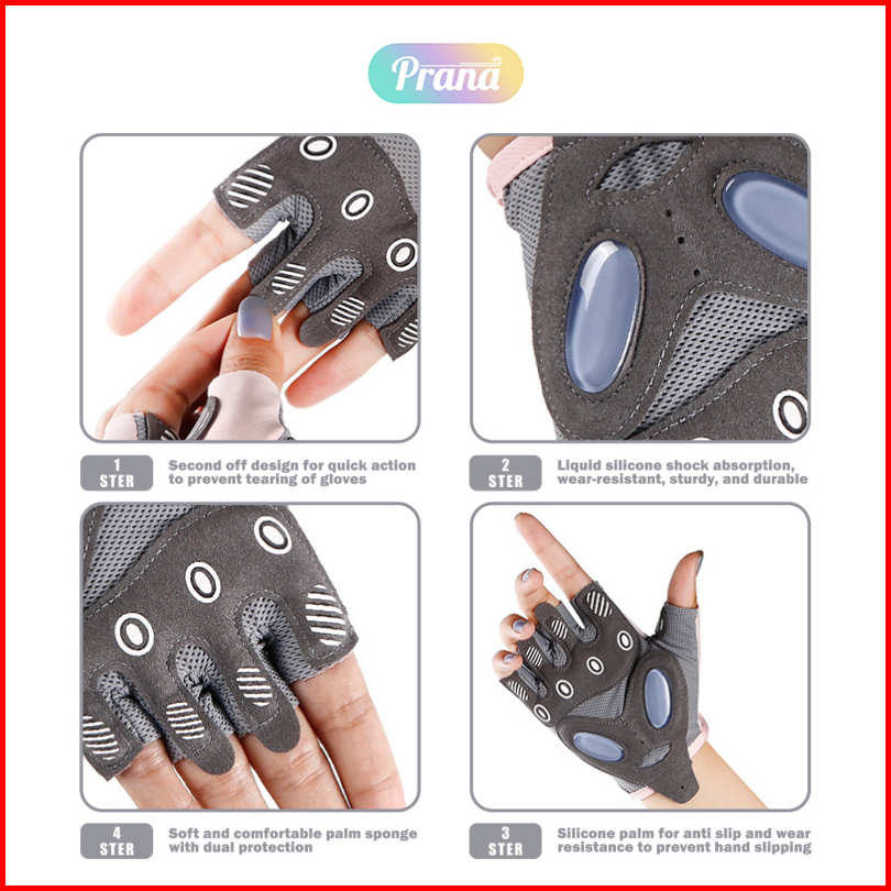 Prana Sarung Tangan Setengah Jari Olahraga Fitnes Running Gym Gloves Sport Weight Lifting Pn-fba5072