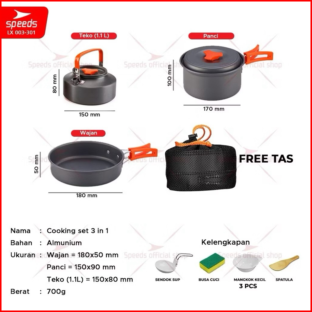 Speeds Alat Masak Set Camping Mini Kemah Rekreasi Paket Cooking Set Kemping Praktis Portable Outdoor 003-301