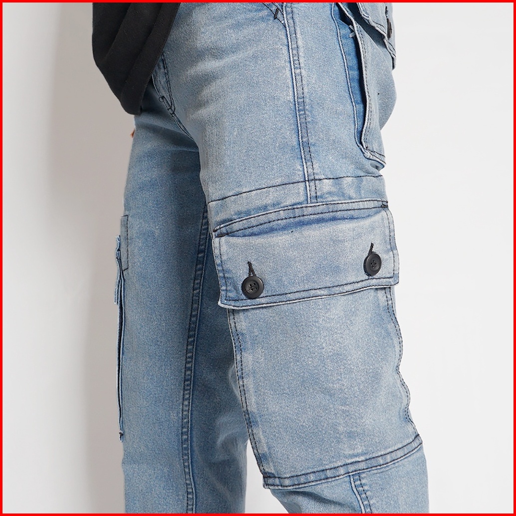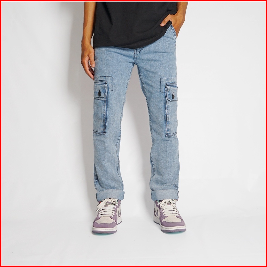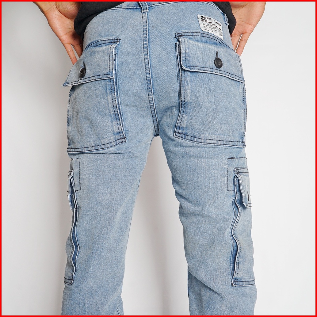 Nvsr Jeans Cargo Washed Pants Celana Panjang Regular Fit Blue